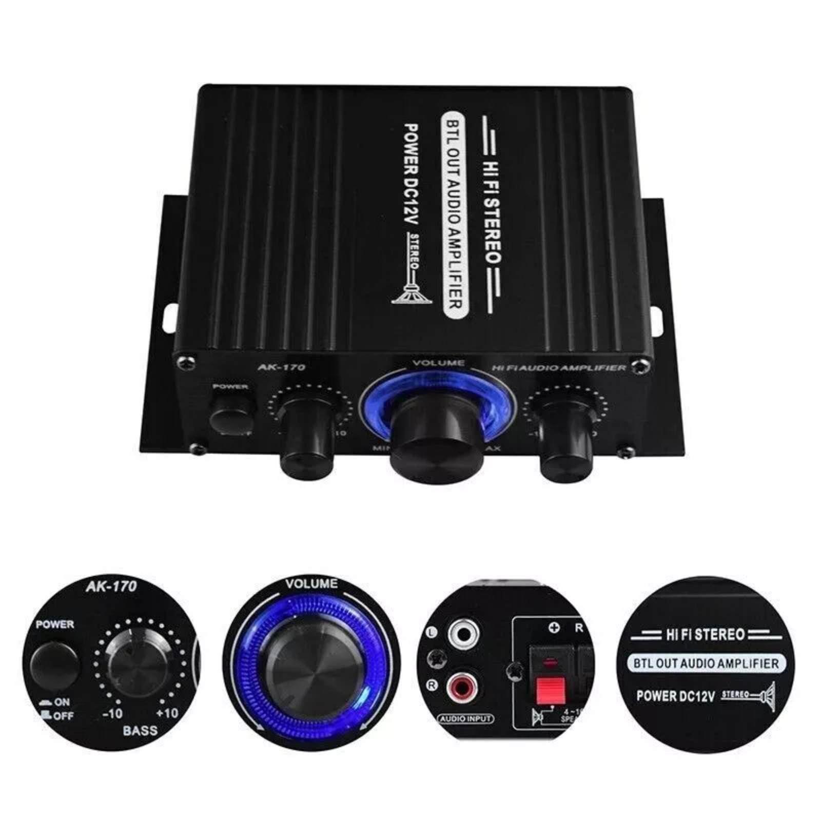 Precise Audio Control: Equipped with responsive buttons for power and intuitive rotary knobs for bass, treble, and volume adjustments, this amplifier allows you to tailor the sound to your exact preferences.