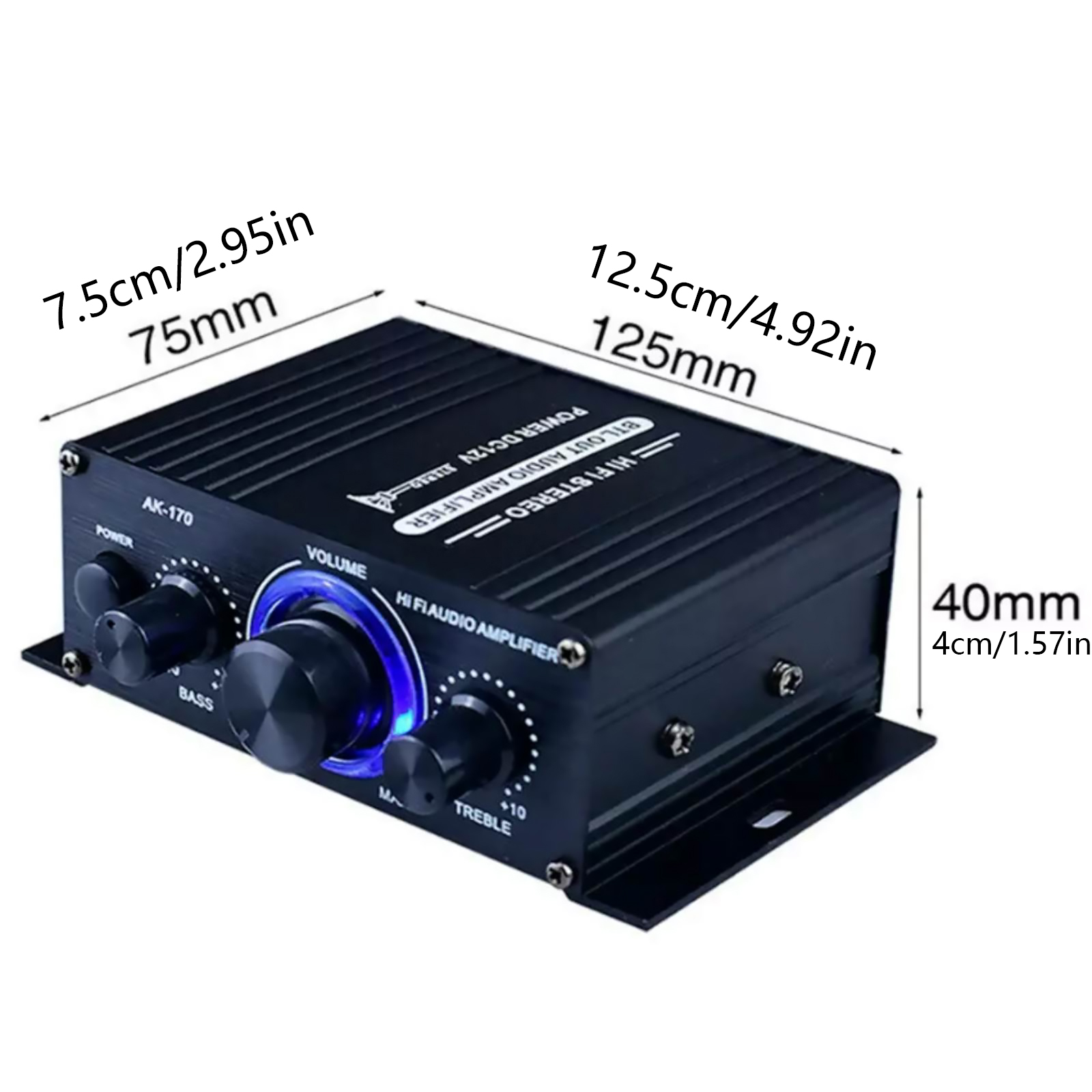 Compact and Portable Design: Crafted from durable aluminum alloy and adorned with blue LED lights on the large knobs, this compact amplifier is easy to transport and integrate into any setup.