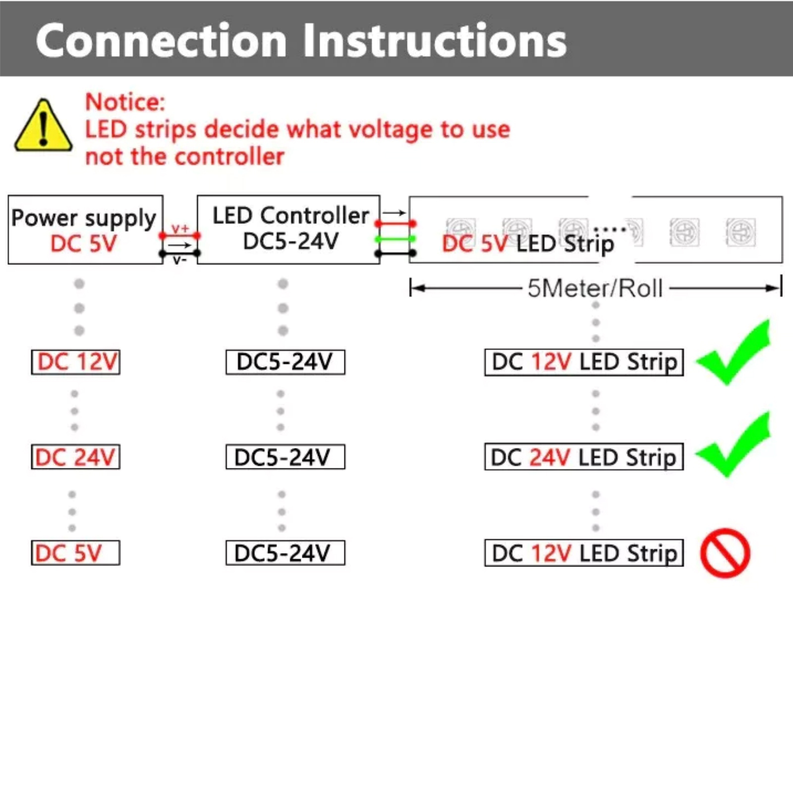 Compatible With DC 12V And 24V Led Light Application, Single Channel Dimming Controller For Single Color Led Lights / Lights Monochrome 5050, 3528 Strips. Not Suitable For Multi-Color Mix Bonded Led Lamps