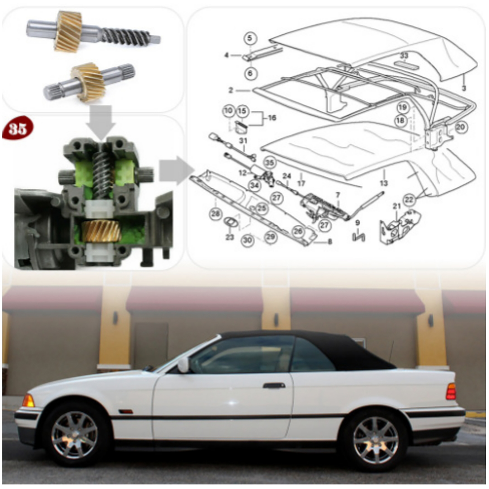 Used to replaced old/damged Convertible Top Latch Motor Gear Repair Kit