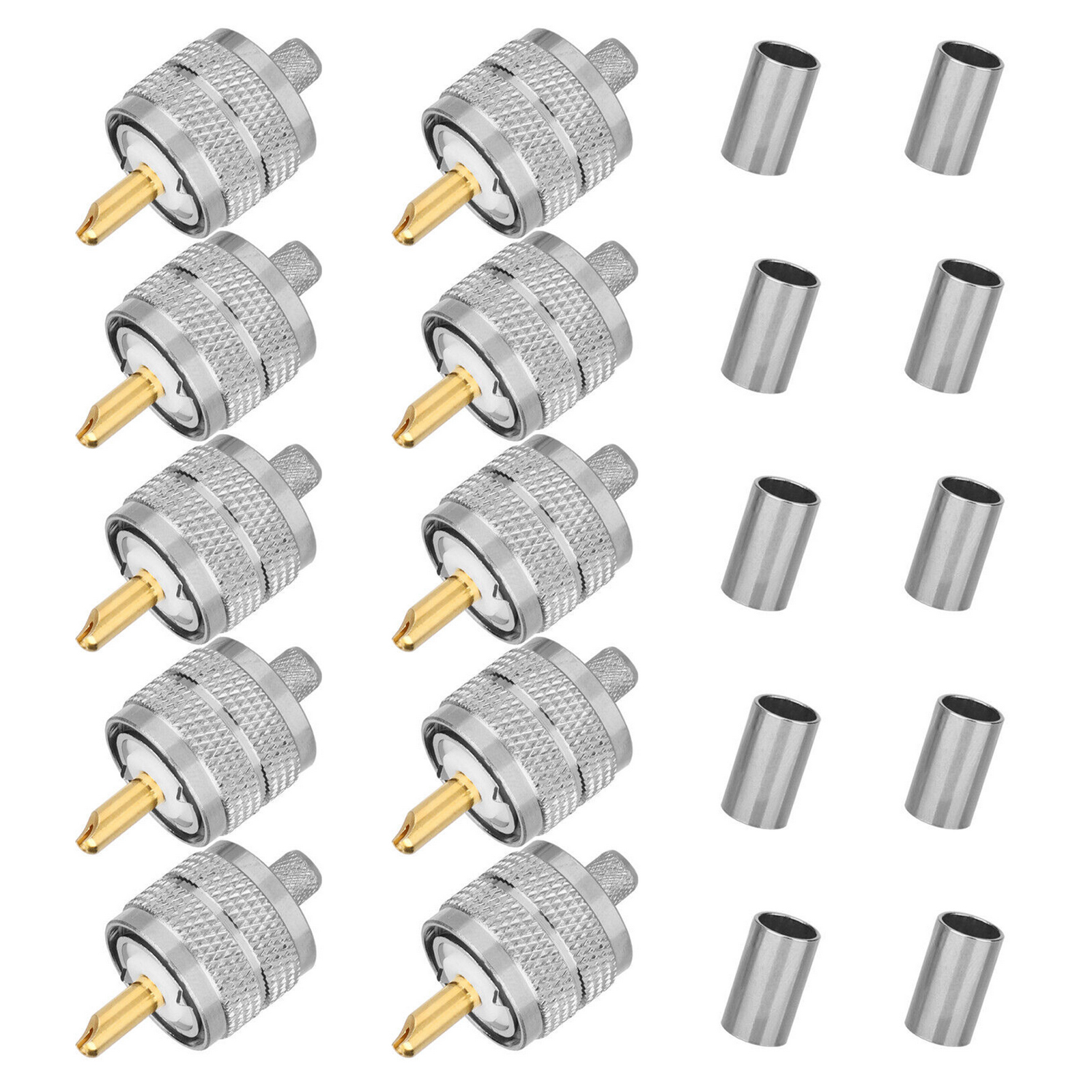 Plug Crimp-Type Connectors for RG58 RG142 LMR195, Body brass nickel plated, Pin gold plated, Insulator PTFE(Teflon), withstand high temperature when soldering and will not Melt