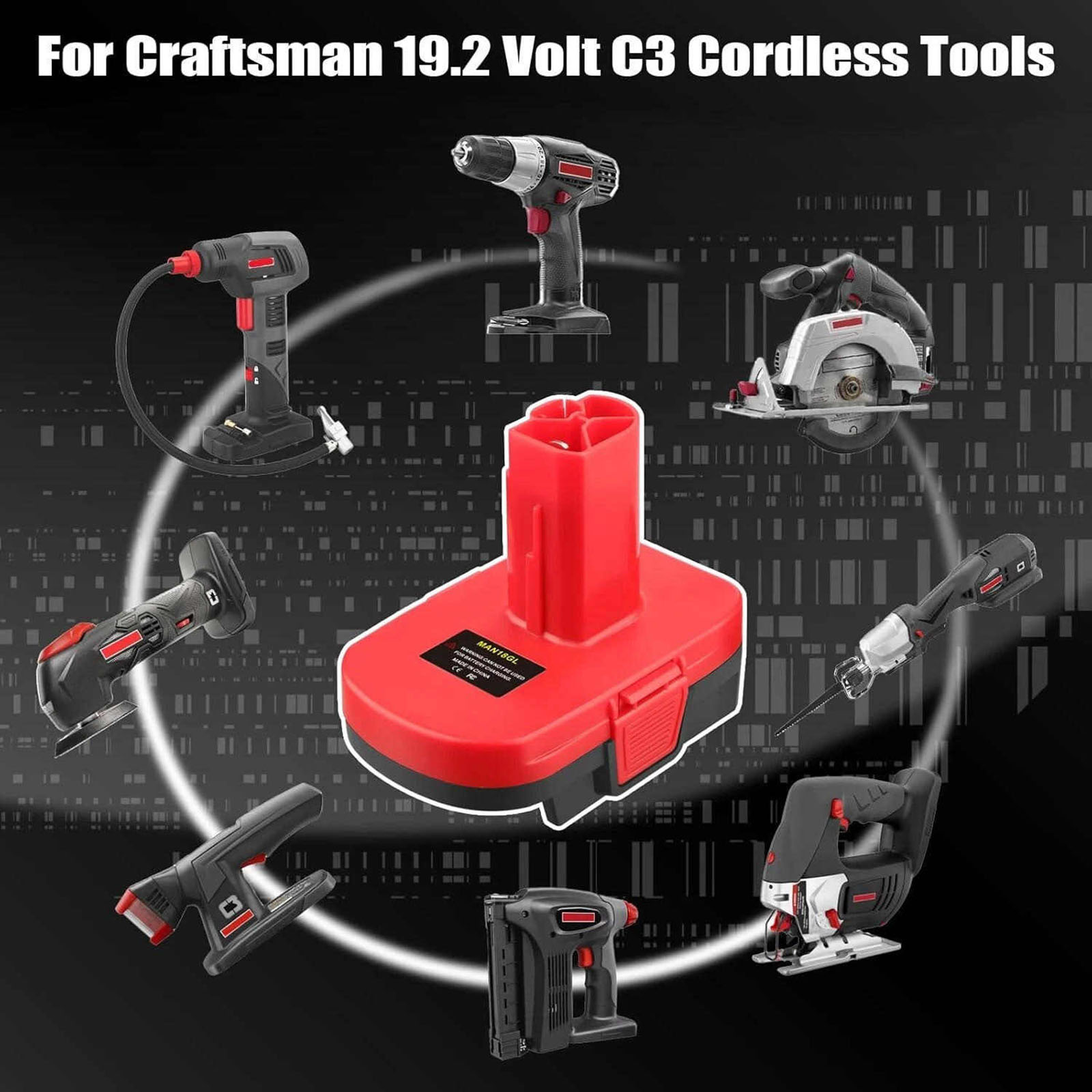 This adapter can make listed lithium batteries use on for craftsman 19.2V cordless tool 315.115410, 10126, 11541, 11543, 11570, 11576, 11578, 11580, 11586, 17338, 17339, CRS1000. and let you enjoy the benefits of extended run-time of li-ion batteries on your existing 19.2V power tools. (Tips: NOT 20v & V20 tools).