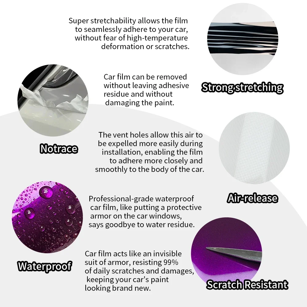 1,Stretchable, Removable, UV proof, Weather proof, Water proof, Resistant to solvents, Easy cleaning, Easy maintenance, Stylish, Can stick any where, Air Bubble Free