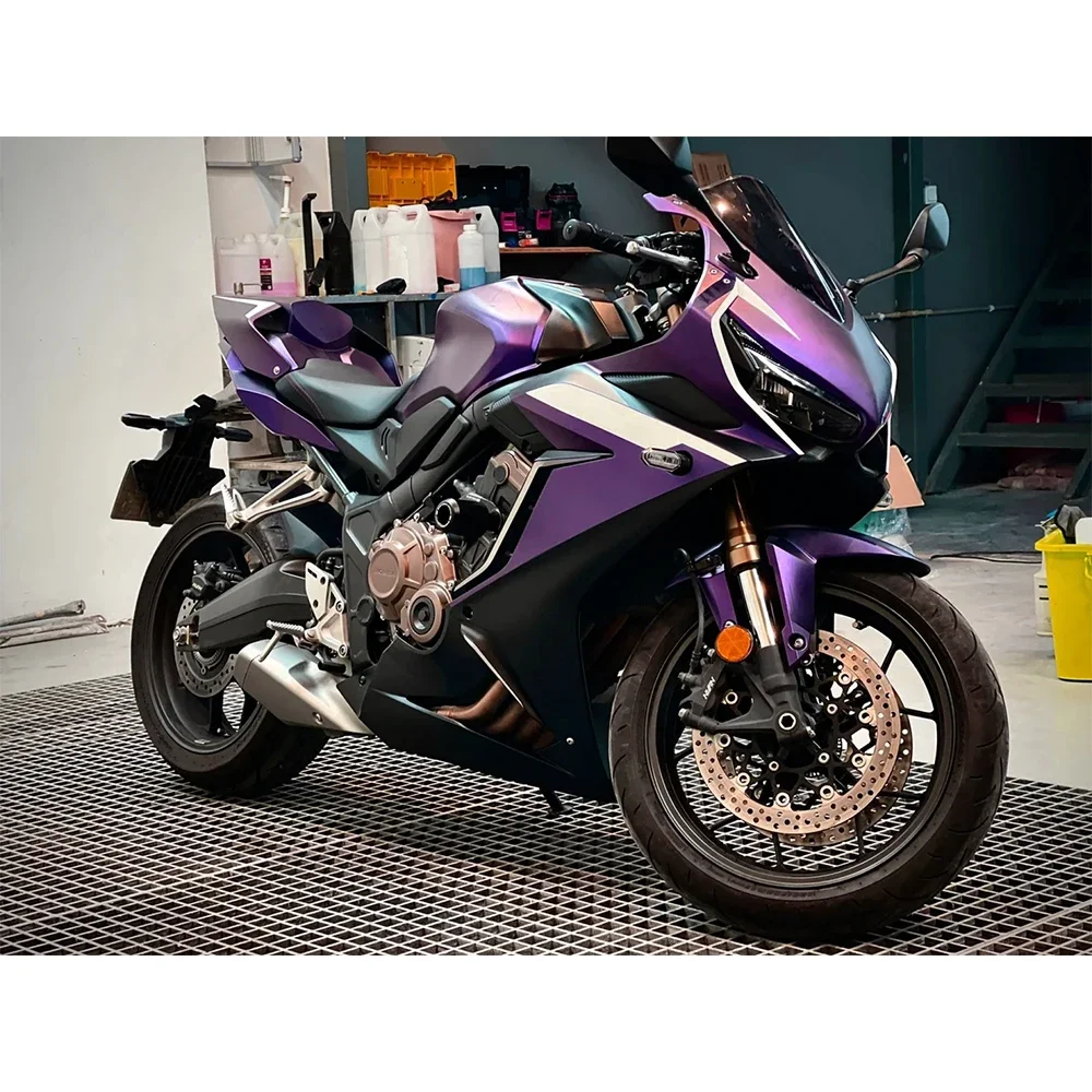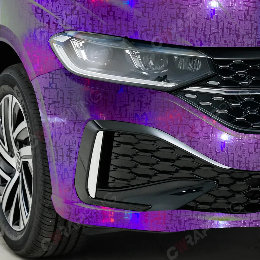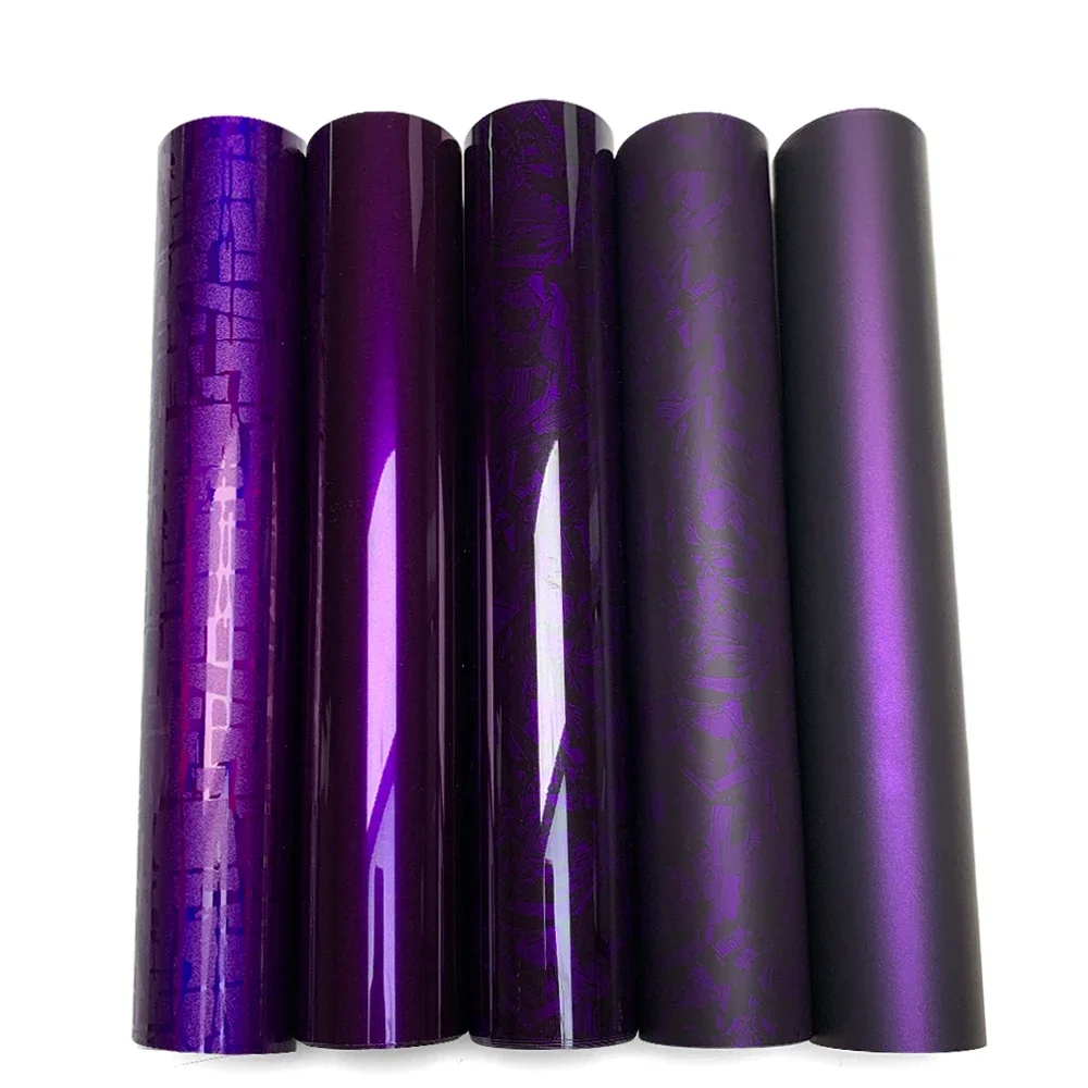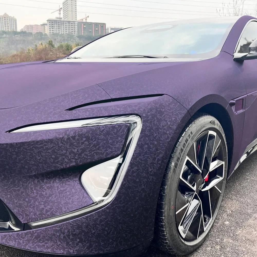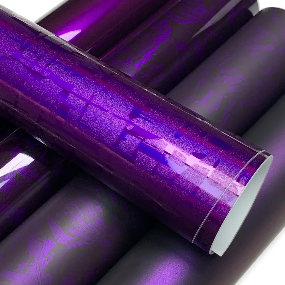 Carbon Fiber Vinyl Wrap PET Purple Car Stickers UV-Resistant Waterproof Film for Automotive Motorcycle Exterior Customization