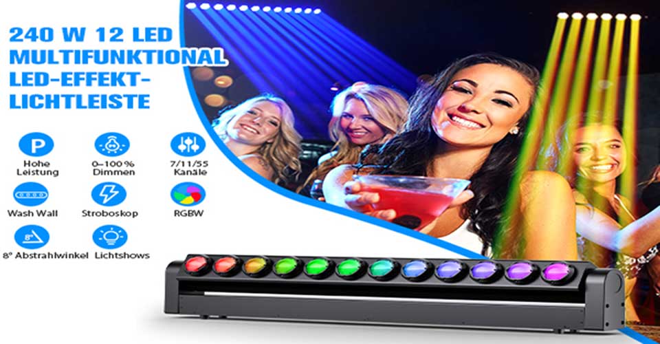 Funktionen: 1. Ausgestattet mit 12 x 15-W-RGBW-Vier-in-Eins-LED-Lichtquellen und einer 8°-Linse liefert dieses Produkt geradlinige, helle und kraftvolle mehrfarbige Strahleffekte, die Ihr Lichterlebnis aufwerten. 2. Das kompakte Design der 12 Lichtquellen erzeugt eine lebendige, helle Atmosphäre und ermöglicht ein exquisites visuelles Erlebnis. Die DMX-Steuerung jeder einzelnen Quelle erfüllt die kreativen Programmieranforderungen von Lichtdesignern. 3. Dank integrierter Automatik- und Sound-Modi mit einstellbarer Geschwindigkeit und Empfindlichkeit ist dieses Licht vielseitig einsetzbar und erfüllt unterschiedliche Anforderungen. Es bietet 31 unabhängige Lichtshow-Optionen, die je nach Anlass frei gewählt werden können. 4. Dank seiner vielfältigen Lichtfunktionen kann dieses Gerät als Wandfluter, Bühneneffektlicht oder Bühnenvorhang eingesetzt werden und bietet so vielfältige Beleuchtungsmöglichkeiten für Ihre Veranstaltungen. 5. Diese vielseitige Lichtlösung eignet sich ideal für eine Vielzahl von Umgebungen, darunter Bühnen, Bars, Restaurants, Partys, Kirchen und kommerzielle Veranstaltungen, und verleiht jedem Veranstaltungsort eine dynamische Atmosphäre. |