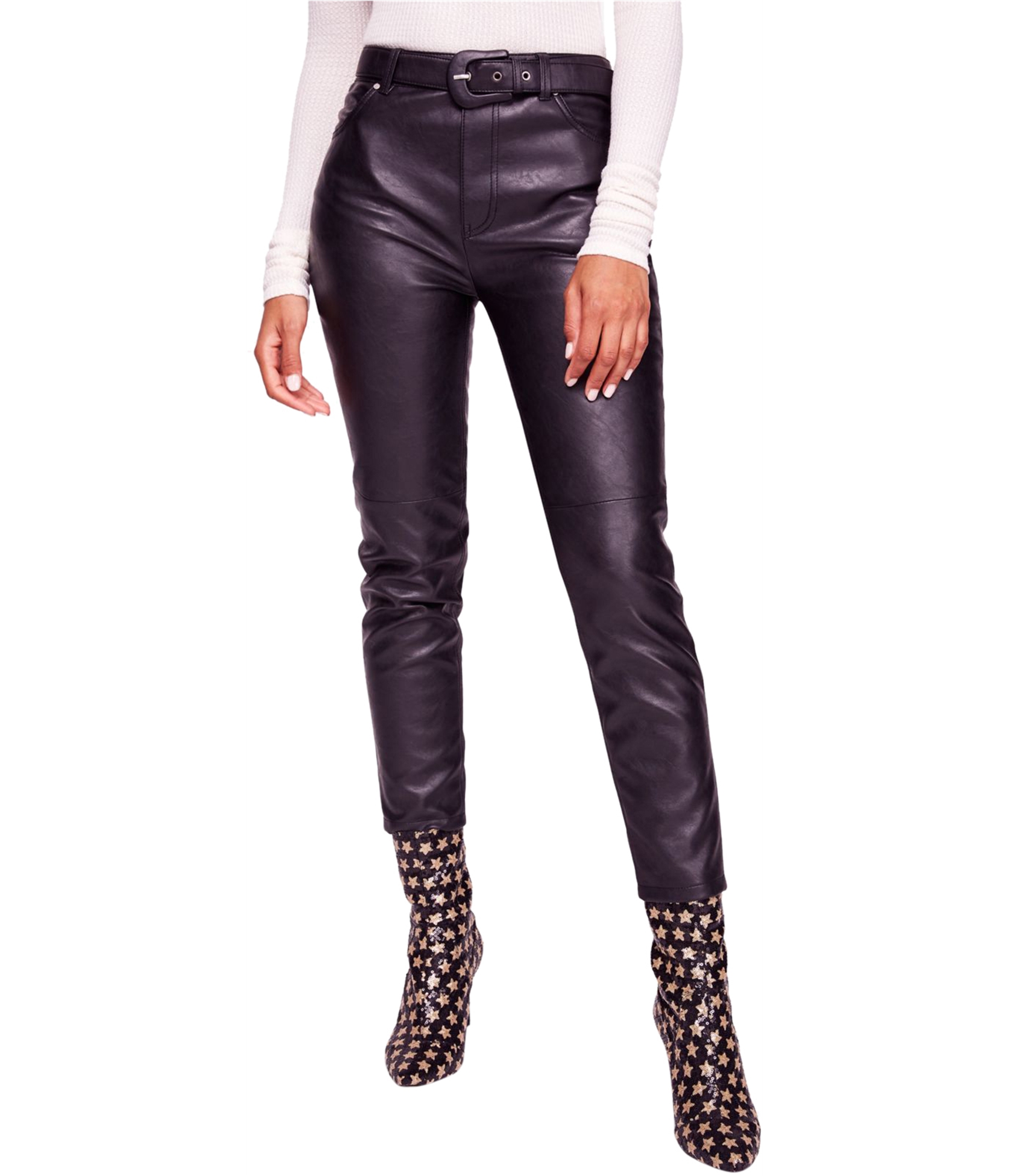 Free People Womens Belted Faux Leather Skinny Fit Jeans, black, 31