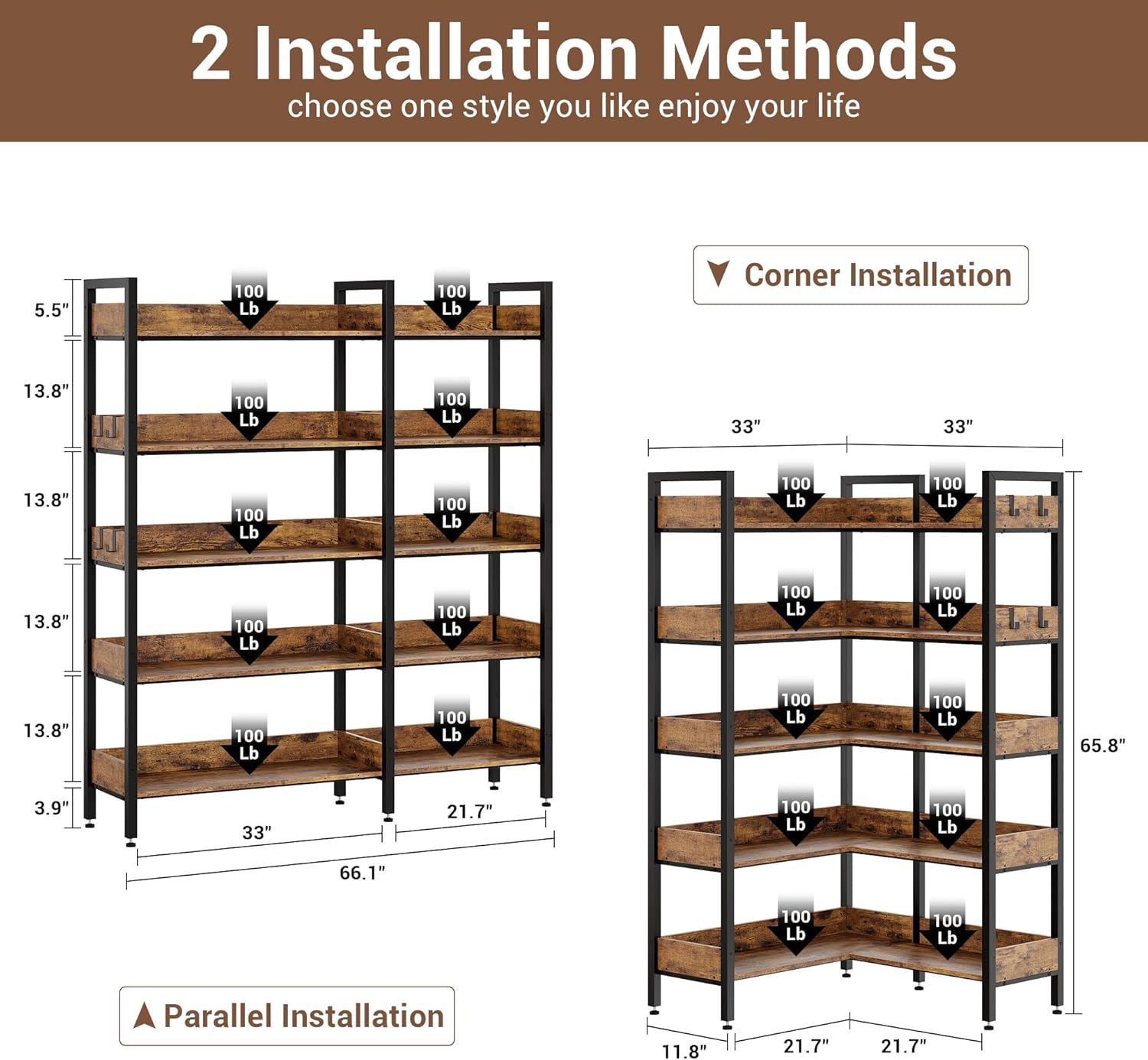 Customize into "L" shape or parallel shape to fit any space. Use as a wide focal-point bookshelf or a corner unit to maximize unused corners—adds versatility and unique charm to your home.