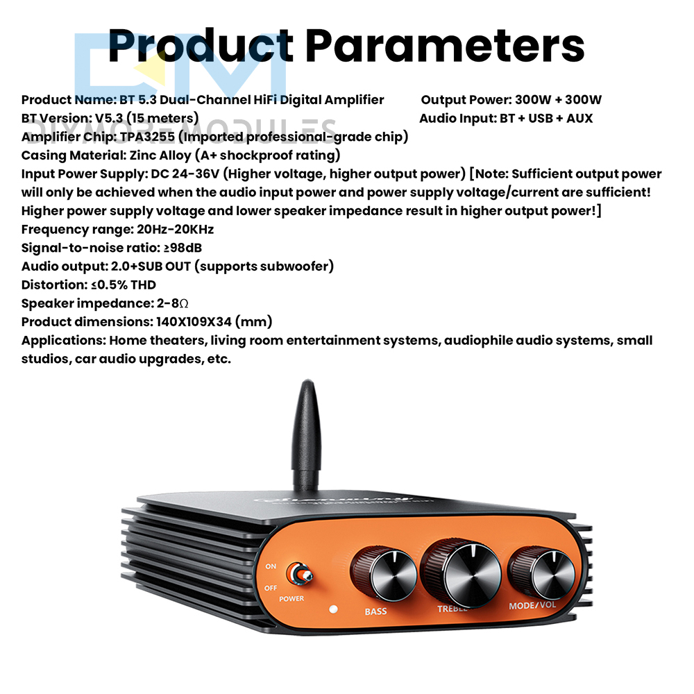Product Name: Bluetooth 5.3 Dual-Channel Hi-Fi Digital Amplifier