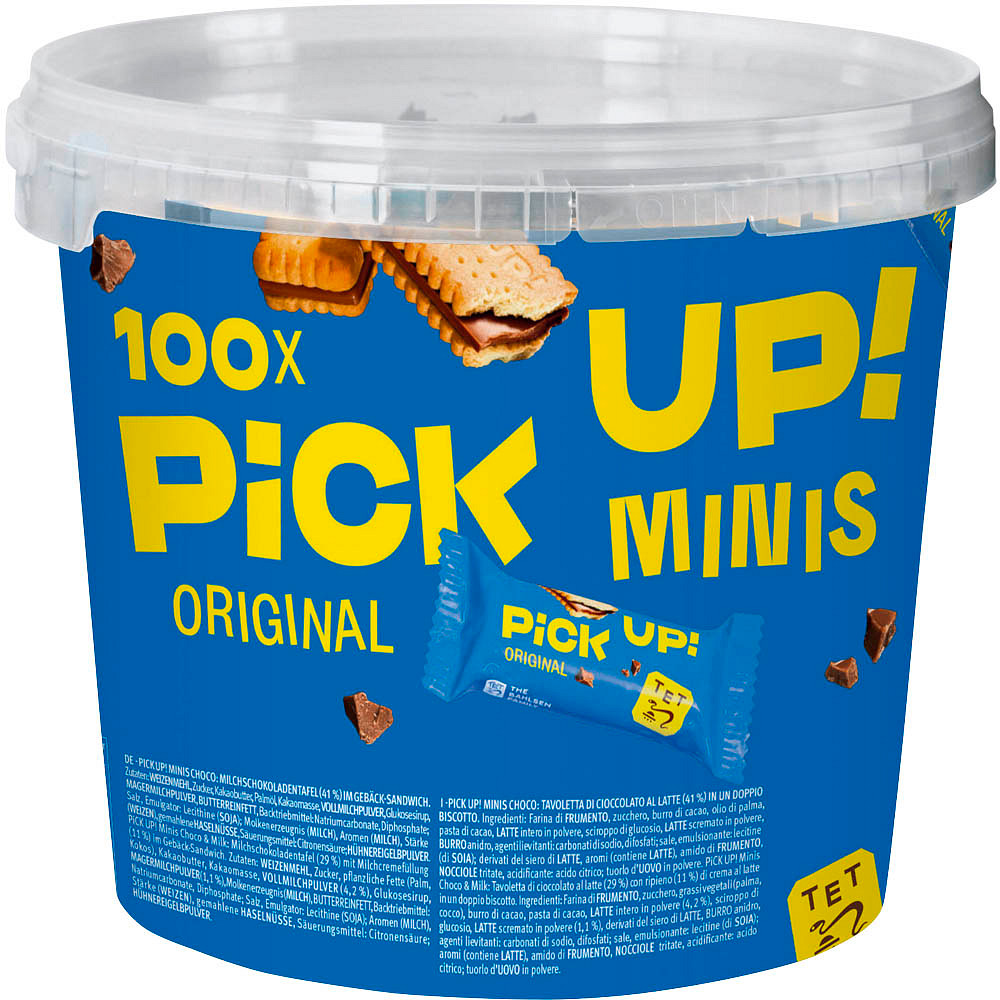 Der leckere Keksriegel gefüllt mit einer knackigen Schicht Vollmilchschokolade bringt Genuss pur und ist nicht nur bei Kindern der absolute Hit. In Konferenzräumen oder Büros fungiert er ebenfalls als süßer Botschafter. Im kleinen Format präsentieren sich die PICK UP! minis ORIGINAL als originelle Kaffee-Beigabe für Ihre Gäste und Kunden.