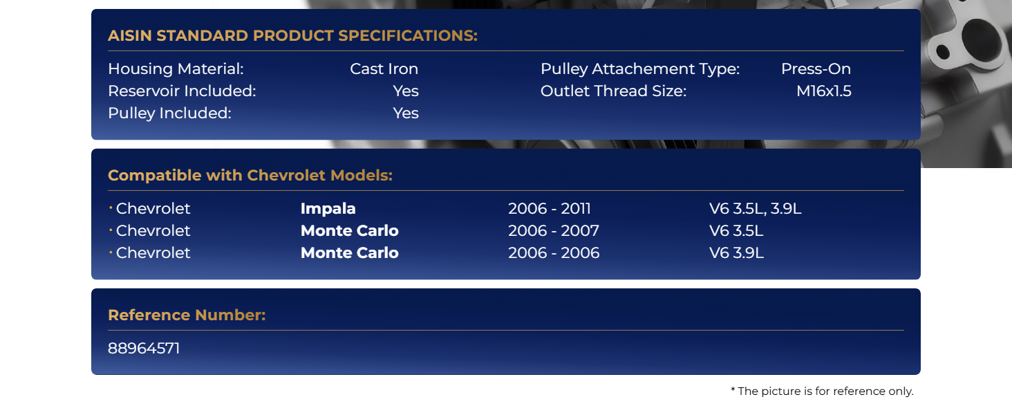 AISIN Power Steering Pump with Reservoir & Pulley for Chevrolet Impala 2006-2011