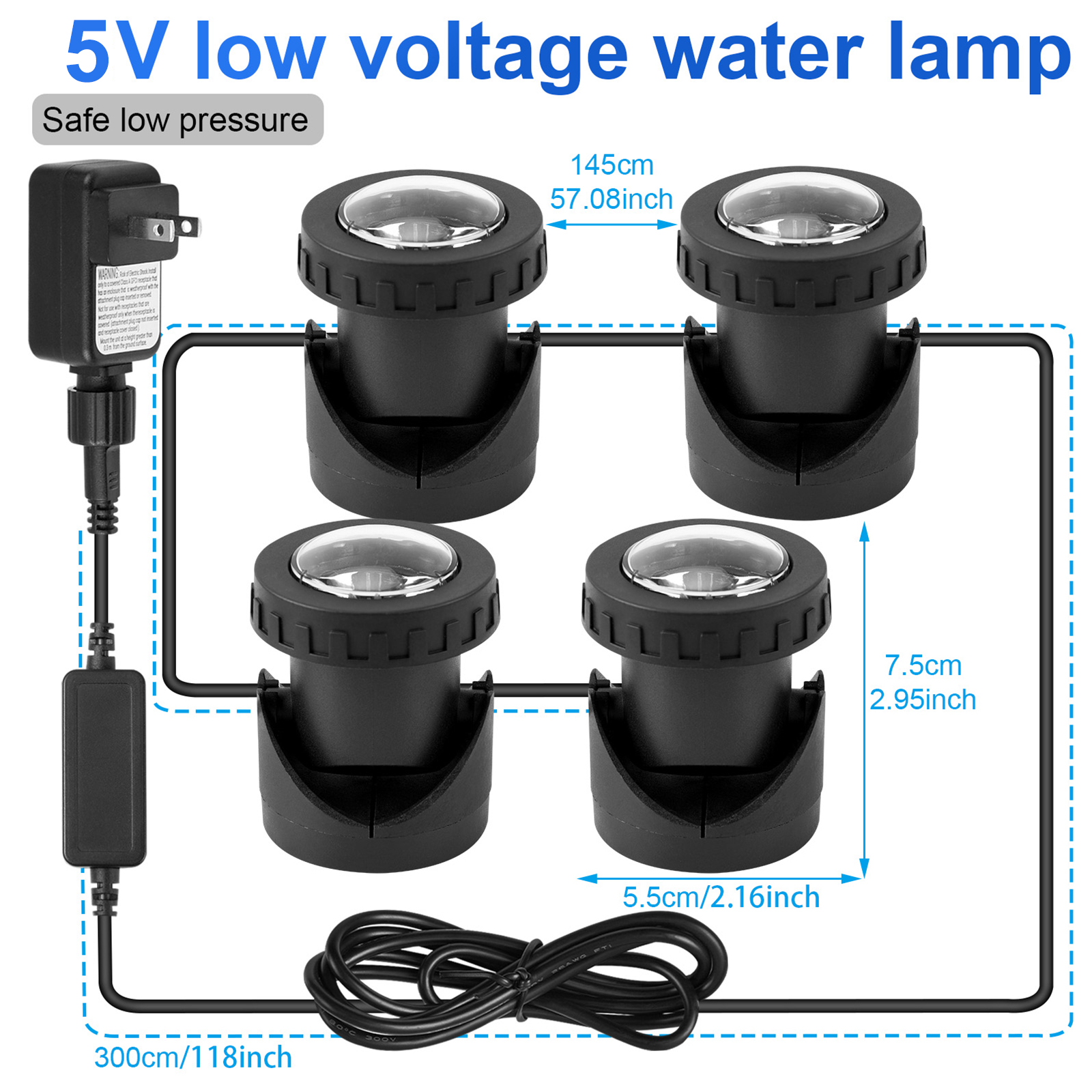 【Remote Control & Multi-function】:Pond lights can adjust 7 Colors (yellow, red, cyan, blue, green, magenta,red+green+blue), 4 dynamic effects(jump mode, twinkle mode, gradient mode, slow gradient mode), speed, brightness, and set time.