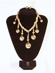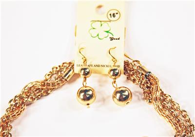 16" Goldtone Hanging Bead Pendant Necklace and Earrings Set