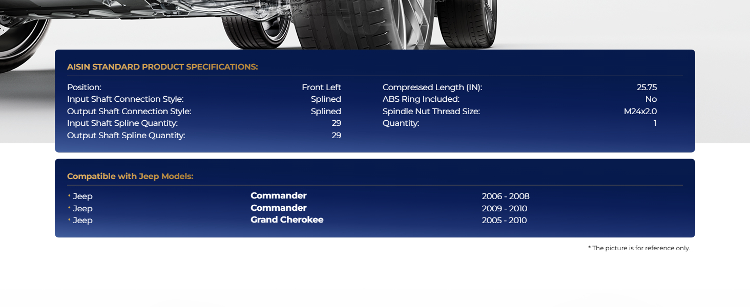 AISIN CVACH-01209 Front Left CV Axle Assembly for Jeep Grand Cherokee 2005-2010