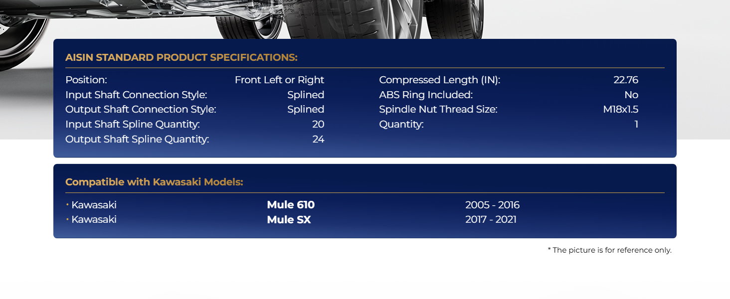 AISIN CVAAZ-01242 Front CV Axle Assembly for Kawasaki Mule 610 SX 2005-2021 4x4