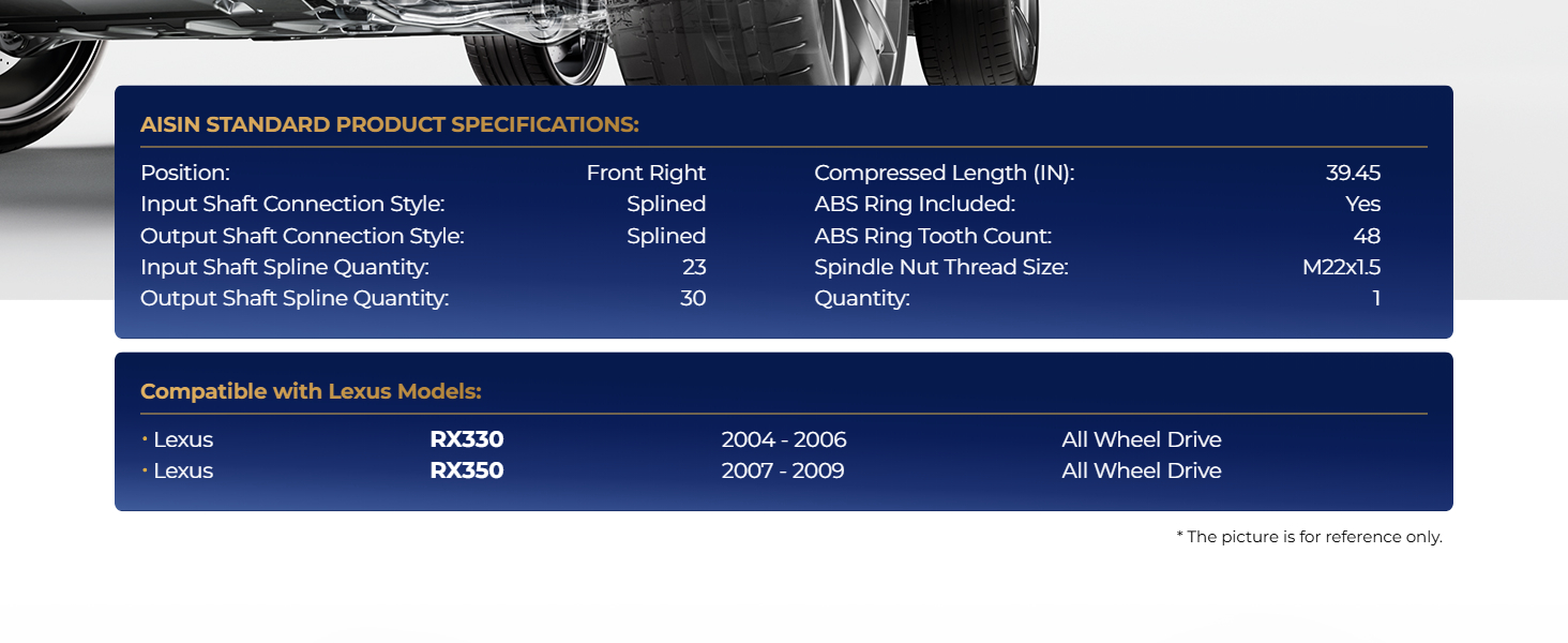 AISIN CVAT-01385 Front Right CV Axle Assembly for Lexus RX330 RX350 2004-2009