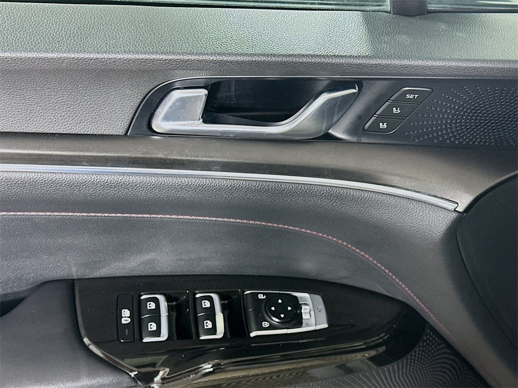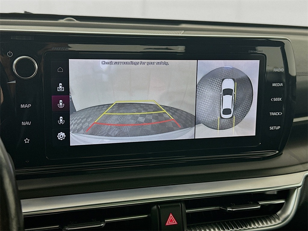 This 2023 Kia K5 GT FWD delivers aggressive turbocharged performance, bold styling, and advanced driver assistance technology in a sleek sport sedan package. Powered by a responsive turbocharged engine paired with an 8 speed dual clutch automatic transmission, the K5 GT offers strong acceleration and confident handling for spirited driving. Safety and technology features include forward collision avoidance assist, blind spot monitoring, rear collision warning, smart cruise control with stop and go, highway driving assist, parking distance warning, a surround view monitor, driver attention alert, and a rear view backup camera to support confident daily driving. Inside, the GT cabin features heated and ventilated front sport bucket seats, a heated steering wheel, memory driver seat and mirrors, dual zone automatic climate control, a digital driver information display, and a premium Bose audio system. Additional convenience highlights include a power glass sunroof, power folding heated mirrors with integrated turn signals, steering wheel mounted controls, and a modern infotainment system with smartphone integration. With its Certified Pre Owned status, Clean Carfax history, and One Owner background, this Kia K5 GT offers performance, technology, and reliability in a stylish midsize sedan.