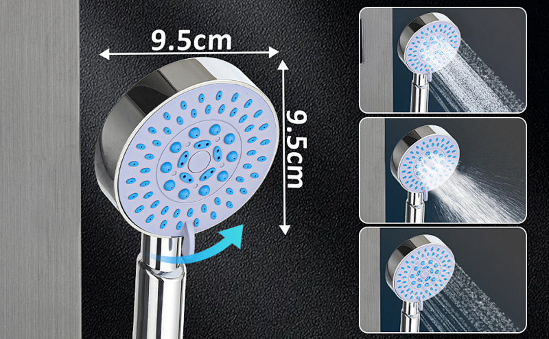Das 5/6-in-1-Duschsystem mit LED-Beleuchtung bietet verschiedene Modi, die Ihre individuellen Bedürfnisse erfüllen: Körperreinigung, einstellbare Rückenstrahldüsen, Muskelentspannung, Rückenpflege, Badewannenbefüllung und eine beruhigende blaue LED-Beleuchtung. Passen Sie die Einstellungen nach Bedarf an, um ein personalisiertes Duscherlebnis zu genießen.