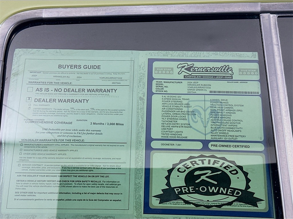 For even more peace of mind, add the 3-month/3,000-Mile Comprehensive Warranty, 1 12-12 Limited Tire and Wheel, 2 Roadside Assistance, 3 Trip interruption insurance, 4 CARFAX® Vehicle History Report™, 5 Major savings on extended protections, 6 $500 Trade in Credit when trading car back to Kernersville CDJR, 7 Plus, we offer something you won't find from any other manufacturer: Certified Warranty Upgrades.