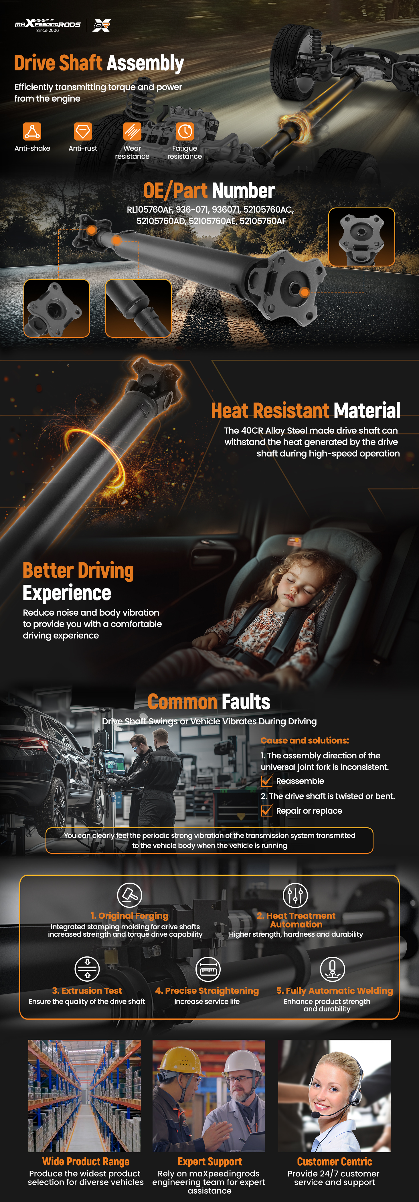 Rear Driveshaft For Jeep Grand Cherokee V8 4.7L 5.7L 2005-2009 AWD 936-071 Auto