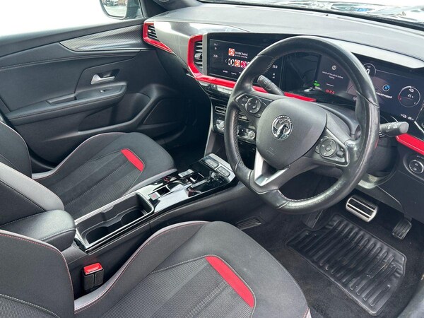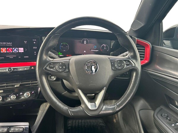 ..Automatic adaptive cruise control, Drive mode selector, Driver drowsiness alert system, eCall emergency call system, Front and rear parking distance sensors, Front camera system, Lane positioning assist, Lights on audible warning, Multi function trip computer, Panoramic rear view camera, Power assisted speed sensitive steering, Side blind spot alert and flank guard, Smartphone integration compatible with Apple CarPlay and Android Auto, Speed sign recognition, Vauxhall connect with e-Call, 11kW on board charger, Chassis drive line front wheel drive, Front chassis equipment, Mode 3 charging cable, Rear chassis equipment, Standard chassis suspension system ride handling, Transmission automatic reducer, Bluetooth A2DP audio streaming function (Advanced audio distribuition profile), Flexible Roof Mounted Radio Aerial, Front USB connection, Mobile phone portal - bluetooth connect, vehicle microphone, handsfree calls, SMS read out and reply, phone book access, Multimedia Navi pro infotainment with satellite nav, 10'' colour touchscreen, 6 speakers, DAB radio, 12'' instrument panel, Apple carplay/Android auto, Steering wheel mounted controls, Two rear USB sockets, 3rd brake light, Adaptive brake lights, Automatic lighting control with tunnel detection, Automatically dimming anti dazzle rear view mirror, Black door mirror housings, Black Griffin logo and vizor frame, Black rear spoiler, Black skid plates, Body colour door handles, Body colour front and rear bumpers, Dark tinted rear side windows + tailgate window, Electrically adjustable, heated and folding door mirrors, Electrically operated front and rear windows with safety auto reverse and one touch up/down facility, Hazard warning lights, Heated rear window+rear wash/wipe, High beam assist, LED daytime running lights, LED front fog lamps, LED side repeat indicators, LED tail lights, Manual headlamp level control, Rear foglight, Rear side wing doors, Rear wiper, Reversing light, Two speed rain-sensitive windscreen wipers with variable intermittent wipe, Windscreen and side window demist vents, 12V Accessory socket, 3 seat bench in 2nd row, 3 spoke flat bottomed leather steering wheel with satin chrome bezel, 4 speed fan with illuminated controls, 6 way manual adjustable driver fore/aft, up/down with reclining seatback, 6 way manual adjustable front passenger fore/aft, up/down with reclining seatback, Air recirculation system, Alloy sports pedals, Black headliner, Cabin particulate filter - removes dust,