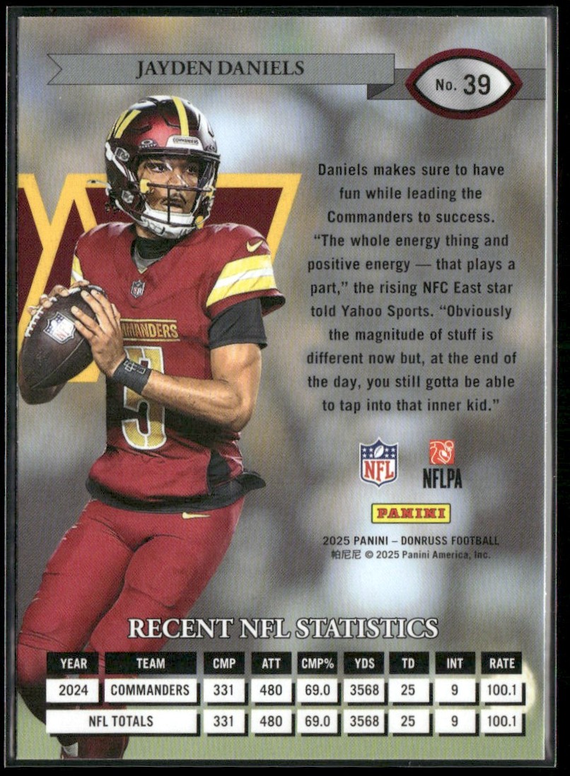 | 2025 DONRUSS RETRO 1995 JAYDEN DANIELS WASHINGTON COMMANDERS #39 |