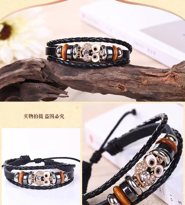 Men's and women's couple bracelet cowhide draw owl bracelet