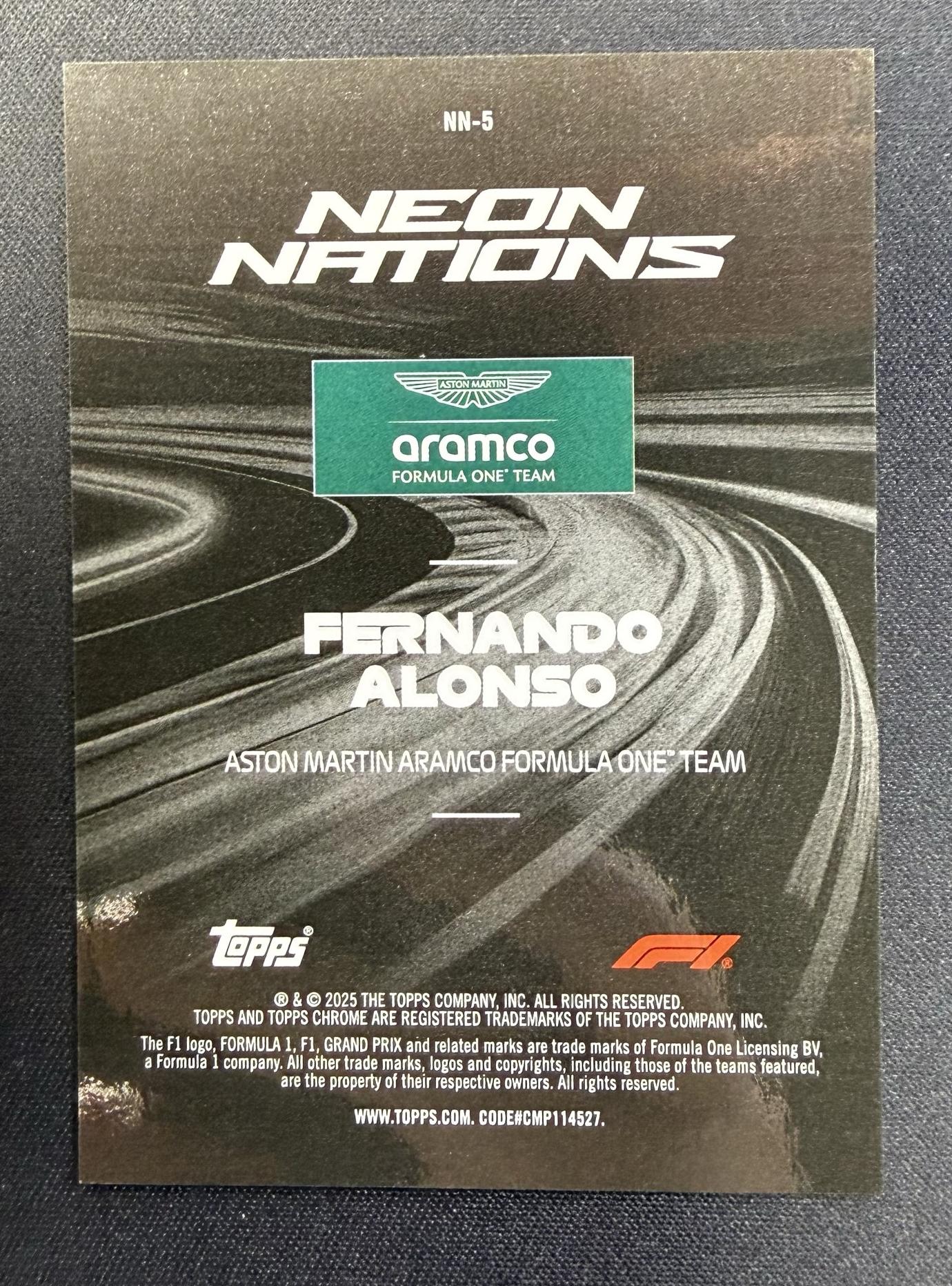 2025 Topps Chrome Racing F1 Fernando Alonso #NN-5 Neon Nations Case Hit SSP