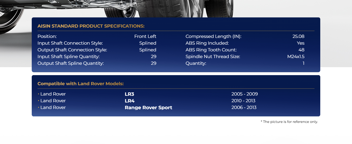 AISIN Front Left CV Axle Assembly for Land Rover LR4 Range Rover Sport 2005-2013