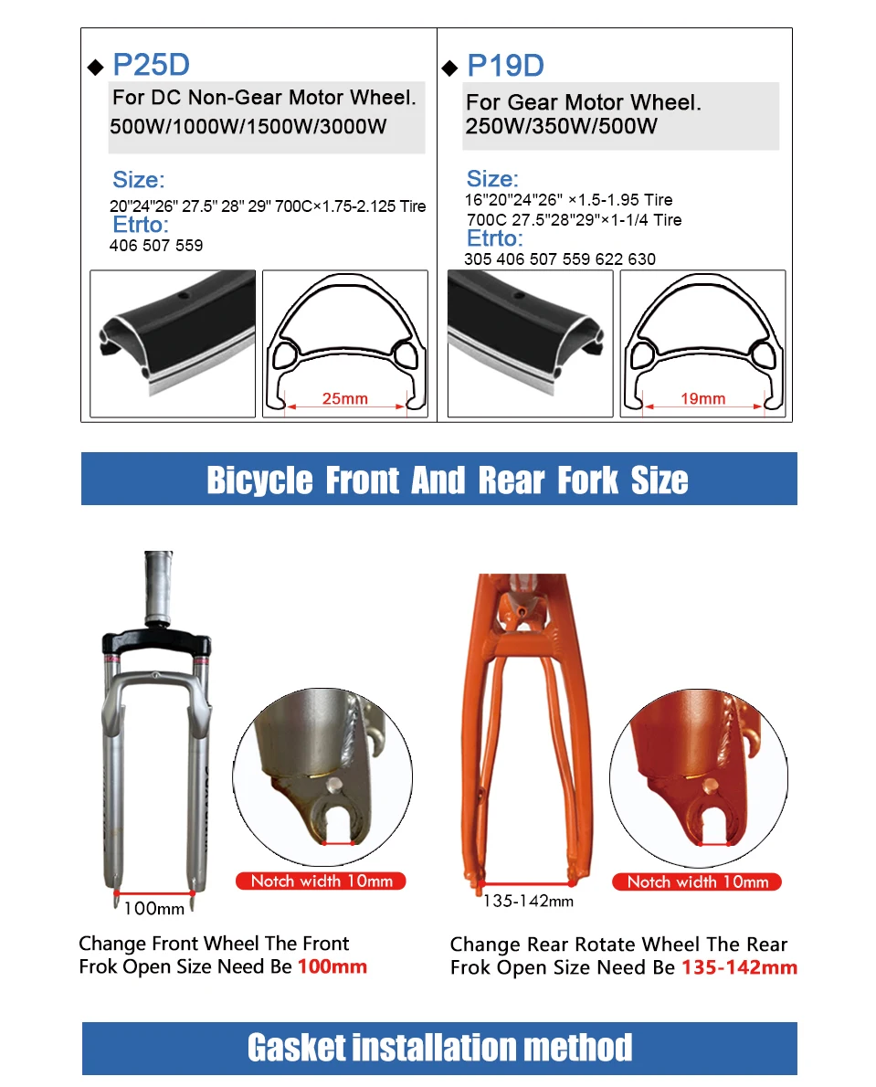 ◑1000W/1500W Motor Standard P25 Felge (Passend für 1,75-2,125 Fahrradreifen)