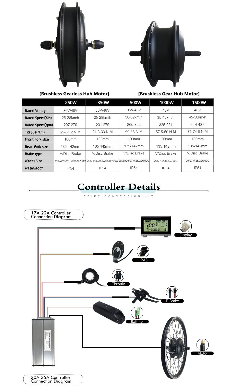◑48V 1000W/1500W verwenden KT 30A/35A Controller.