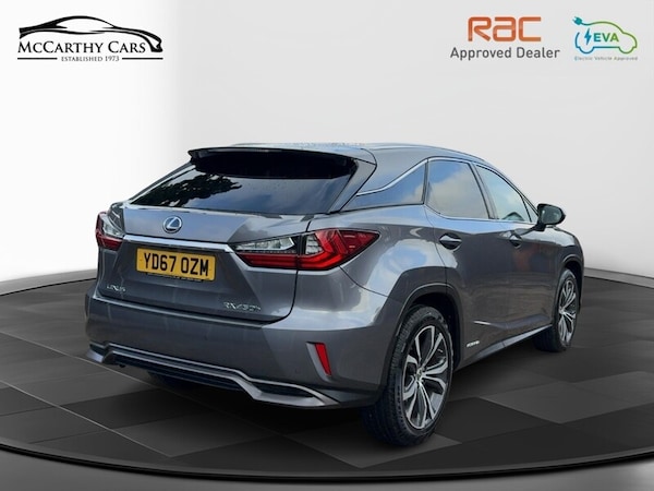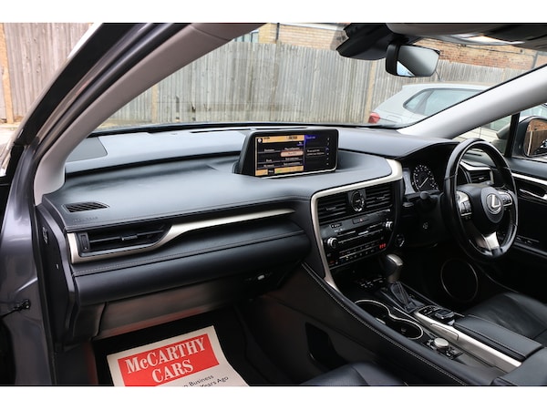 Metallic Mercury Grey, Privacy Glass, Black Full Leather Interior With Heated & Ventilated Seats, Panoramic Sunroof, Satellite Navigation, Bluetooth With Music Streaming, DAB Radio, USB/AUX Input, Lane Departure Warning, Reversing Camera With Front & Rear Parking Sensors, Air Conditioning, Climate Control, Cruise Control, Multi Function Steering Wheel, Push Button To Start, Electric Windows/Folding Mirrors/Memory Drivers Seats/Electric Passenger Seat/Tailgate, power steering, ABS Brakes, multi airbags, ISOFIX Child Seat Preparation, Day Time Running Lights, 20in Lexus Alloy Wheels, Remote Lexus Alarm, Just 3 Owners from new, Previously Supplied By Us, Same Lady Owner for the last 3 years, This Car Has Covered Only 75,000 Miles & Benefits From a Full Service History, This Car Can Achieve Over 53 MPG & Costs £195 A Year Road Tax, NO ULEZ CHARGE. Every Vehicle is Subjected To a Rigorous RAC Approved 82 Point Buysure Inspection and is supplied Fully Serviced With a RAC Platinum Parts and Labour Warranty, 1 Years MOT, 12 Months RAC Roadside Assistance including and HPI Checked, Admin Fee May Apply, 4 Years RAC Platinum Parts and Labour Warranty Available, Over 200 Cars in Stock, Finance Available, No Deposit Required, Part Exchange Available. McCarthy Cars Are RAC Approved and Highly Recommended By Them, Have Complete Peace Of Mind With The McCarthy Cars and RAC Buysure Programme.Available extras include Privacy Glass, Bluetooth, Sat Nav, DAB Radio, Front and Rear PDC Parking Aids, Leather Interiors and Heated Seats.McCarthy Cars are a Multi Award Winning Car Dealership and Most Loved Business in Croydon. Find Us On Facebook, You Tube and Twitter @mccarthycarsuk. McCarthy Cars, A Family Run Business Established 50 Years Ago, Open 7 Days a Week. CR0 3RG, / Grey (metallic),Metallic paint,Panoramic Glass Sunroof,12.3 inch entertainment display with DVD player located at the front front,12v power outlet located in front section front,288 volt 1.9 kWh nickel metal hydride battery 30,3456 cc 3.5 litres V 6 engine with variable valve timing/camshaft and four valves per cylinder Engine code: 2GR-FXE,65 litre 14.3 UK gallon main fuel tanks main,ABS,Active/combined hybrid,Adaptive cruise control,Anti collision system which activates brake lights and brakes at low speed and includes brake assist and pedestrian & cyclist avoidance system,Anticorrosion warranty: 144 months Unlimited miles Unlimited km,Anti-theft protection with interior monitoring,Asymmetrically folding rear seats: bench type with space for three people; with zero electric adjustments front,Audio system with CD player ; radio receives AM/FM/LW digital and RDS colour screen,Automatic air conditioning with two climate control zones,Automatic full and part-time four wheel drive,Automatic smart card/key includes keyless entry and keyless start,Bluetooth includes music streaming,Brake assist system,Central door locking: Operated by card key Includes windows,Centre armrest between front seats,Centre armrest between rear seats,Charges: VAT [20%] = 8869.00 VED (Band G) = 450.00 FRF = 55.00 Showroom Tax = 150.00 Additional Charges (GB) = 26.00,Chrome/bright trim around side windows and on bumpers,Chrome/silver roof rails,Computer includes average speed average fuel consumption instantaneous fuel consumption and range for remaining fuel,Connections for USB (front) and auxiliary audio devices (front),Cornering lights/kerb illumination,Data completeness: up to date pricing data up to date data for key leasing items specifications data from official documentation up to date colour & trim data up to date option pricing data and out of date option content data,Date introduced: Model introduced 24 Sep 2015 and Version introduced 24 Sep 2015,Day time running lights,Driver seat: sports type ventilated heated electrically adjustable four electrical adjustments passenger seat: sports type ventilated heated electrically adjustable four electrical adjustments driver,Driver seat: sports type ventilated heated electrically adjustable four electrical adjustments passenger seat: sports type ventilated heated electrically adjustable four electrical adjustments passenger,Electrically foldable mirrors,Electrical systems warranty 60 months 96560 km 60000 miles,Electric boot/hatch pull down,Electric driven wheels: rear,Electronic brake distribution,Electronic hand brake,Electronic traction control,Emissions: EU6 compliant and 127 g/km CO2 (max),Energy recuperation,Engine start/stop,Euro NCAP crash test results: Overall: 5.00 Adult occupant: 91.00 Child occupant: 82.00 Pedestrian: 79.00 Safety assist: 77.00 Version tested: Lexus RX 450h 5dr SUV Date tested: 02 Dec 2015 Euro NCAP,External dimensions: 4890mm long 1895mm wide 1685mm high 2790mm wheelbase 11800mm turning circle (kerb to kerb) 13800mm turning circle (wall to wall) 192.5 inches long 74.6 inches wide 66.3 inches high 109.8 inch