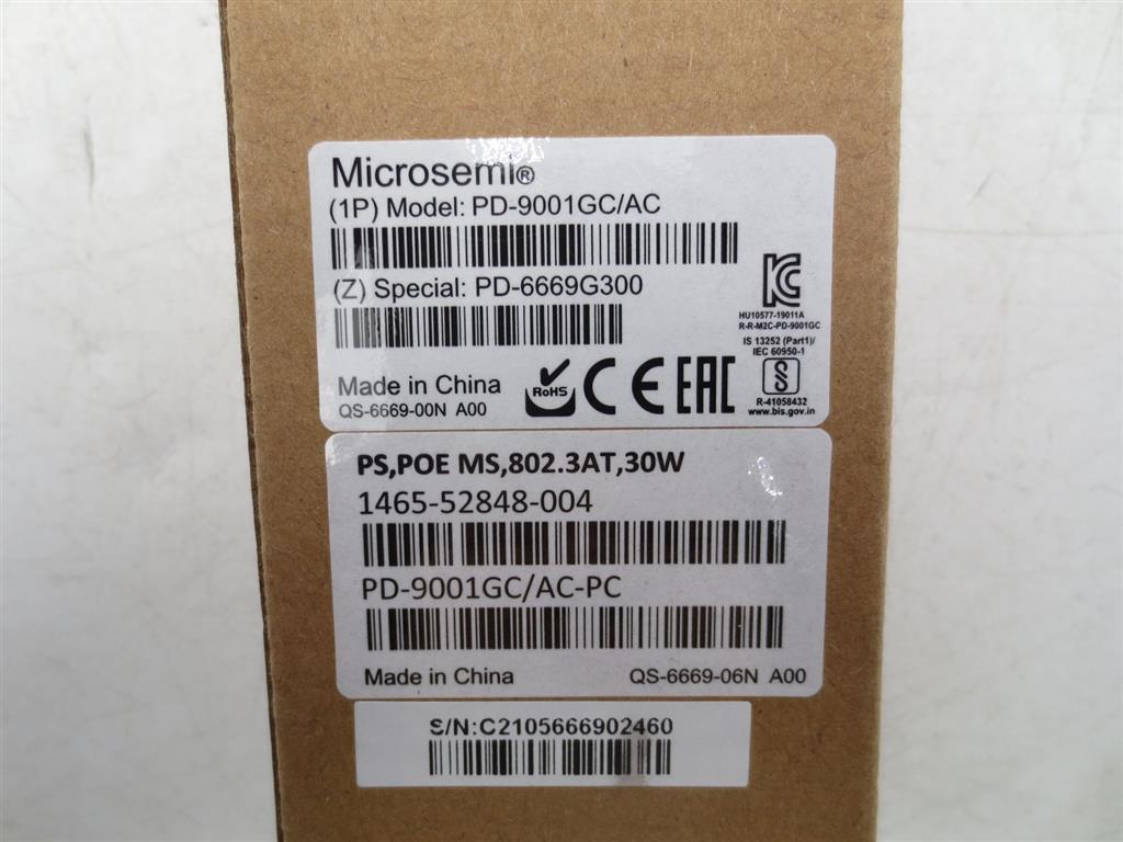 | Microsemi PD-9001GC/AC 802.3at 30W Singe-Port Gigabit Indoor PoE Midspan |