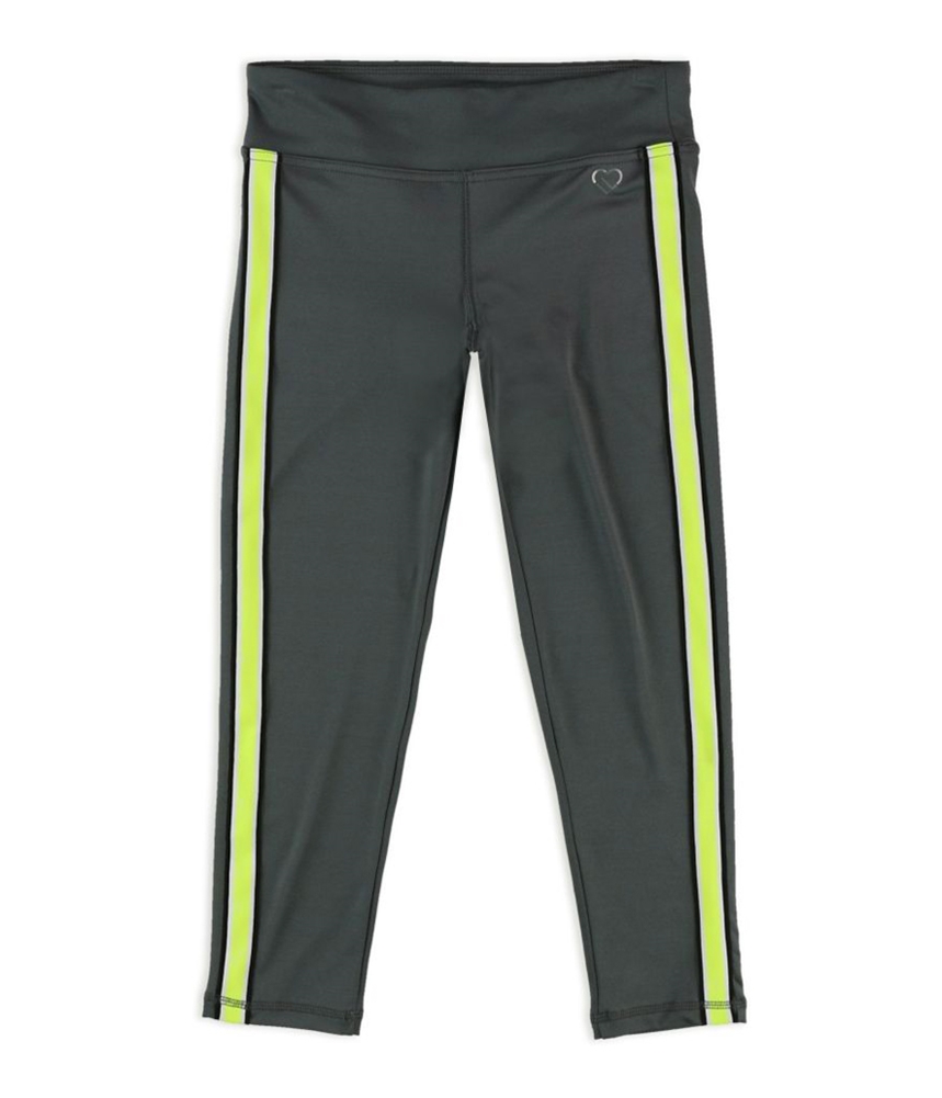 Snag these sleek athletic capris for your next treasure hunt, whether it's hitting the gym or the thrift store! Crafted for movement, these light-weight pants feature a low-rise fit and a wide waistband for ultimate comfort. A cheerful logo adorns the left side, while bright stripes race down each leg, adding a pop of playful energy. Made from a dynamic blend of 88% polyester and 12% spandex, these capris offer just the right amount of stretch for all your adventures.