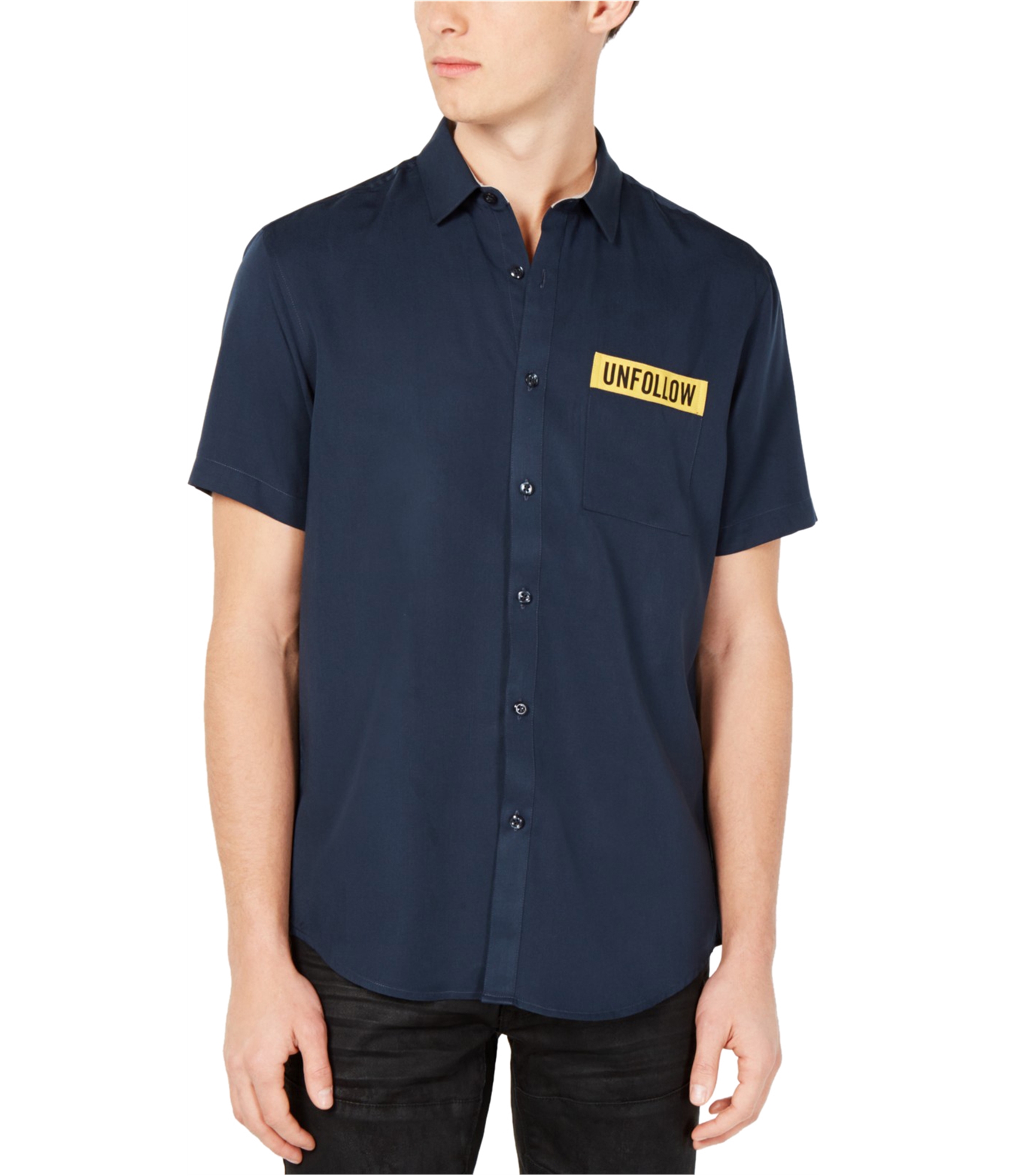 STAND OUT WITH THE "UNFOLLOW" APPLIQUE: Making a statement has never been easier, thanks to the bold, contrasting "UNFOLLOW" applique that instantly elevates this shirt from basic to badge of honor.