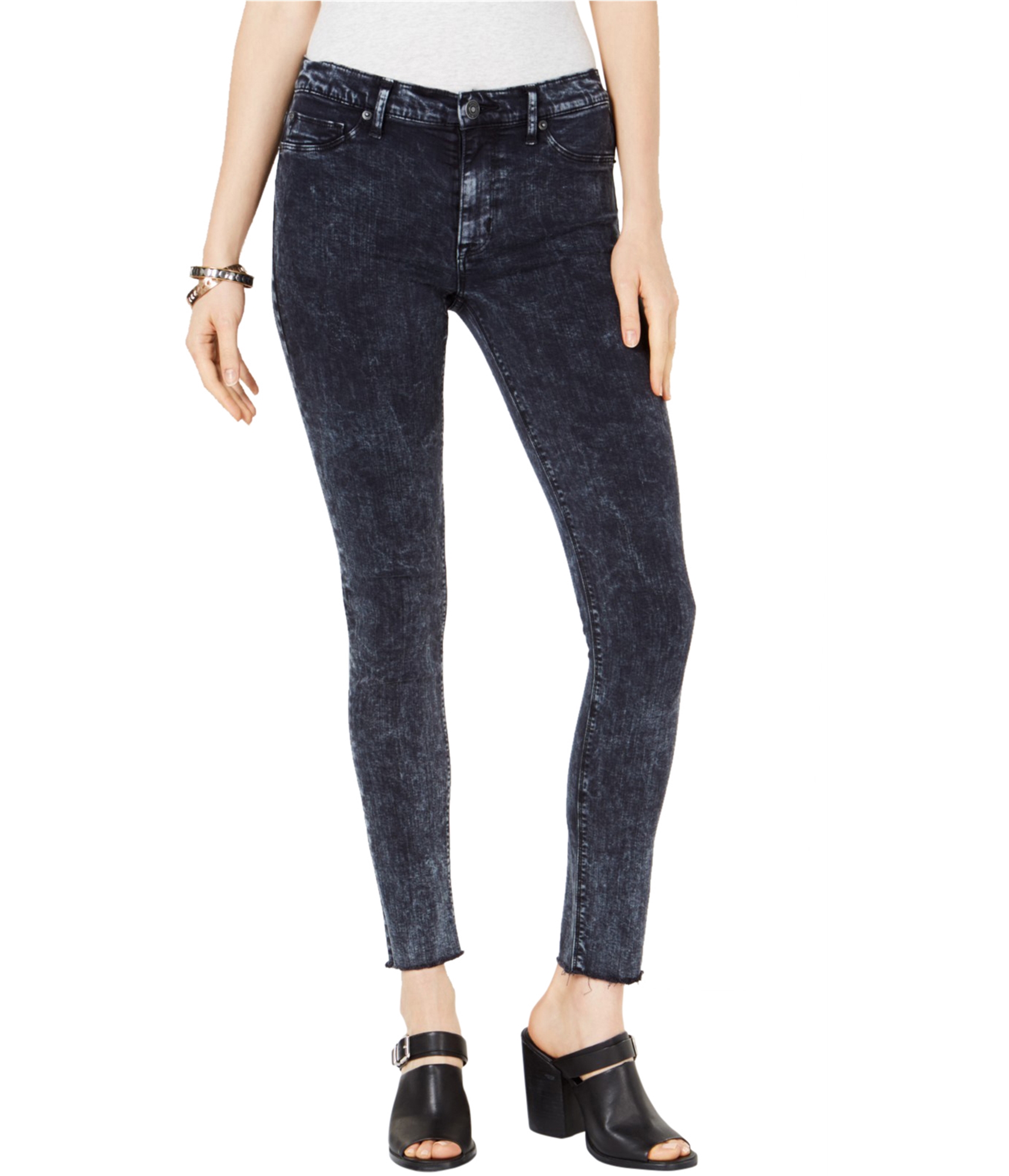 Featuring a zipper closure and classic pockets, these jeans are meticulously detailed with antiqued jewelry accents. The raw hemline offers a contemporary, deconstructed finish that pairs perfectly with everything from sleek ankle boots to open-toe mules. Crafted for a perfect fit, they move with you, ensuring all-day comfort and confidence. Whether you're hitting the town or enjoying a relaxed weekend, these versatile skinny jeans are an essential addition to your wardrobe.