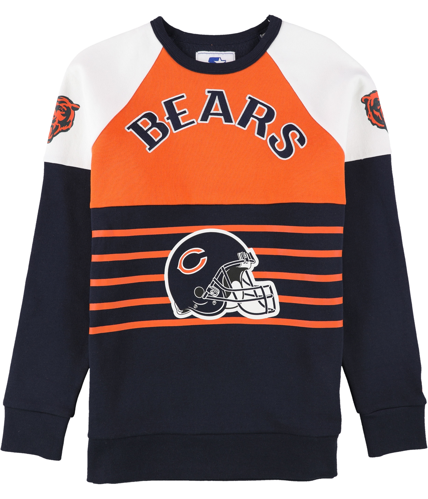 Show your team spirit with this eye-catching Chicago Bears sweatshirt. Designed for the ultimate fan, this piece features bold graphics that declare your allegiance. The classic crew neck and long sleeves offer a comfortable, familiar feel, while the unique raglan sleeves provide a full range of motion, perfect for cheering from the stands or a casual day out. Its medium weight construction ensures warmth without bulk, making it a versatile addition to your game-day or everyday wardrobe. Imagine the cheers getting louder as you sport this spirited sweatshirt, feeling the energy of the game no matter where you are.