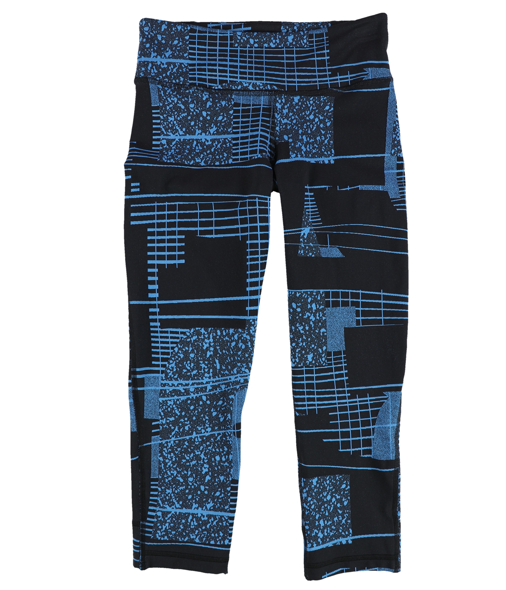 VERSATILE STYLE STATEMENT: These 3/4 length leggings feature a unique two-tone graphic grid and speckled abstract pattern, offering a modern aesthetic that complements any casual outfit.