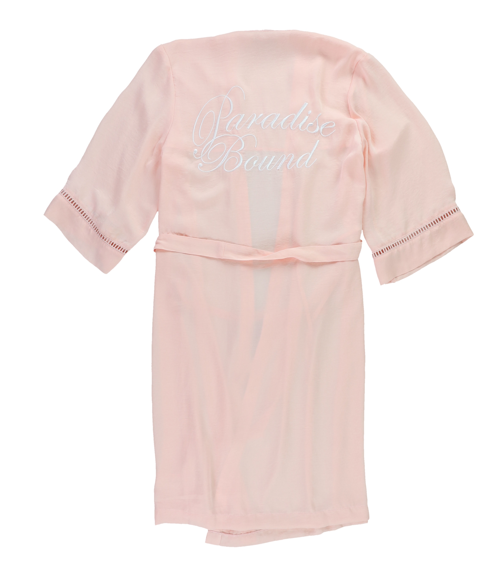 LUXURIOUS EMBROIDERY: The "Paradise Bound" detail on the back adds a unique, artisanal touch, elevating this robe beyond basic loungewear.