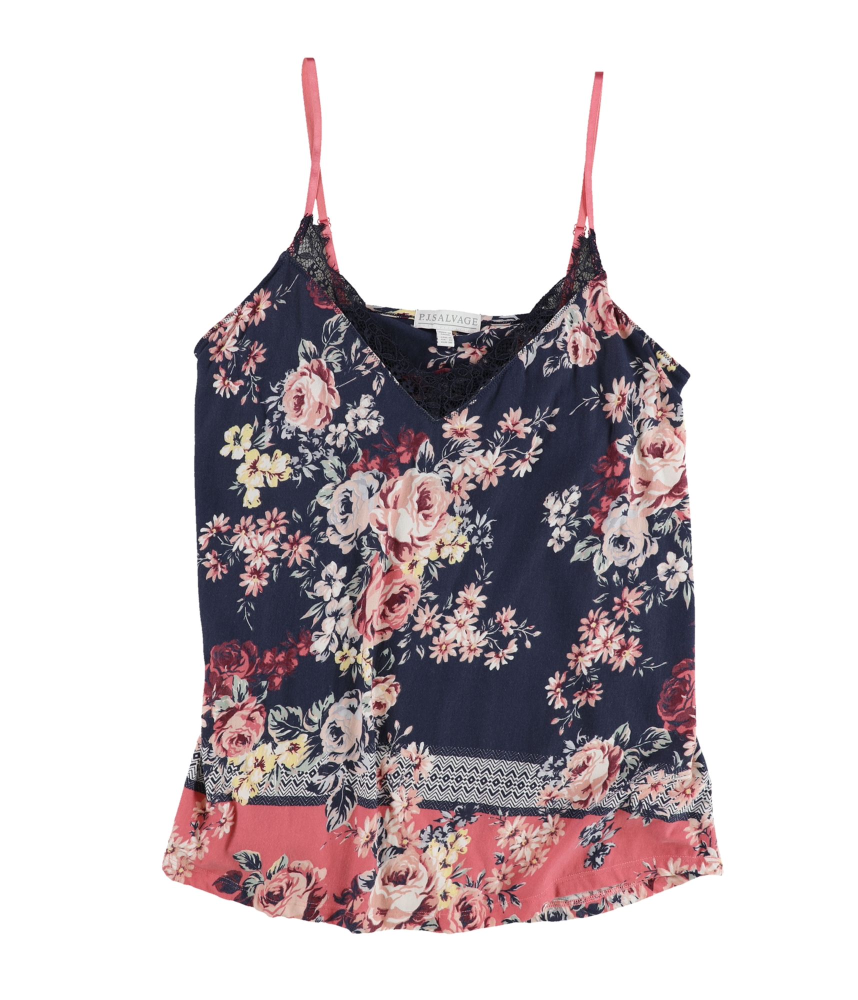 Unwind in exquisite comfort with this P.J. Salvage camisole, crafted from a blend that feels as luxurious as it looks. The delicate floral print cascades across the fabric, creating a visual garden that soothes the senses. Adjustable straps and a V-neckline adorned with lace trim offer refined detailing, perfect for moments of quiet indulgence. Imagine yourself starting your day with a cup of coffee on the patio or winding down in the evening. This top moves with you, a light and airy layer that feels like a gentle whisper against your skin, ideal for lounging and peaceful sleep.