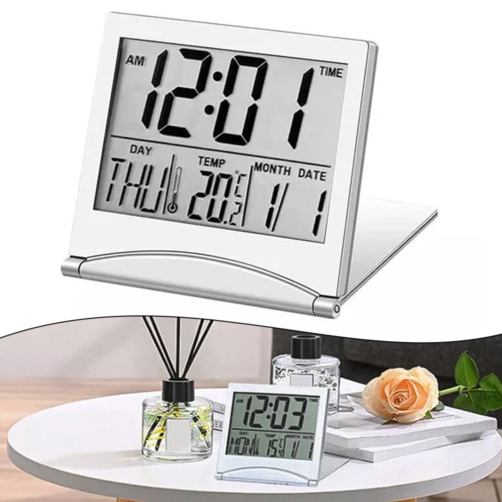 *Large LCD Screen Display: This digital travel alarm clock features a large, clear LCD screen that allows you to easily read the time, date, day of the week, and temperature from a distance,  Guarantee you stay informed at all times.