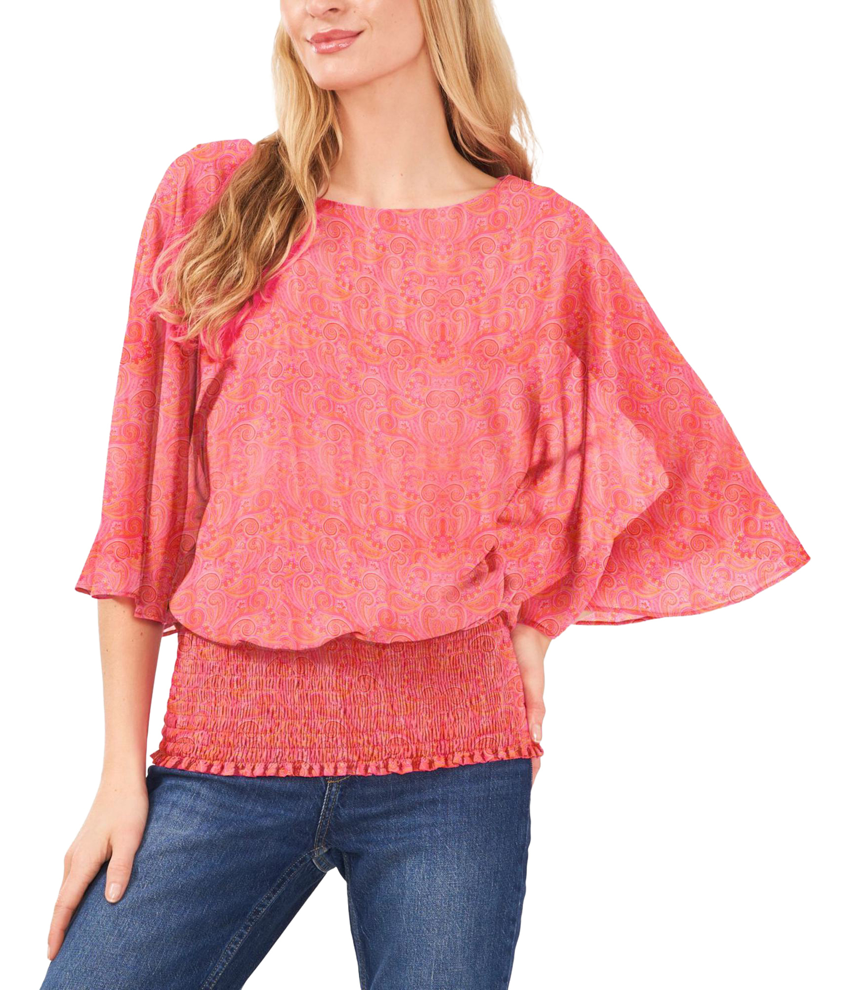 SAM AND JESS Womens Smocked-Waist Peplum Blouse, mediumred, XS