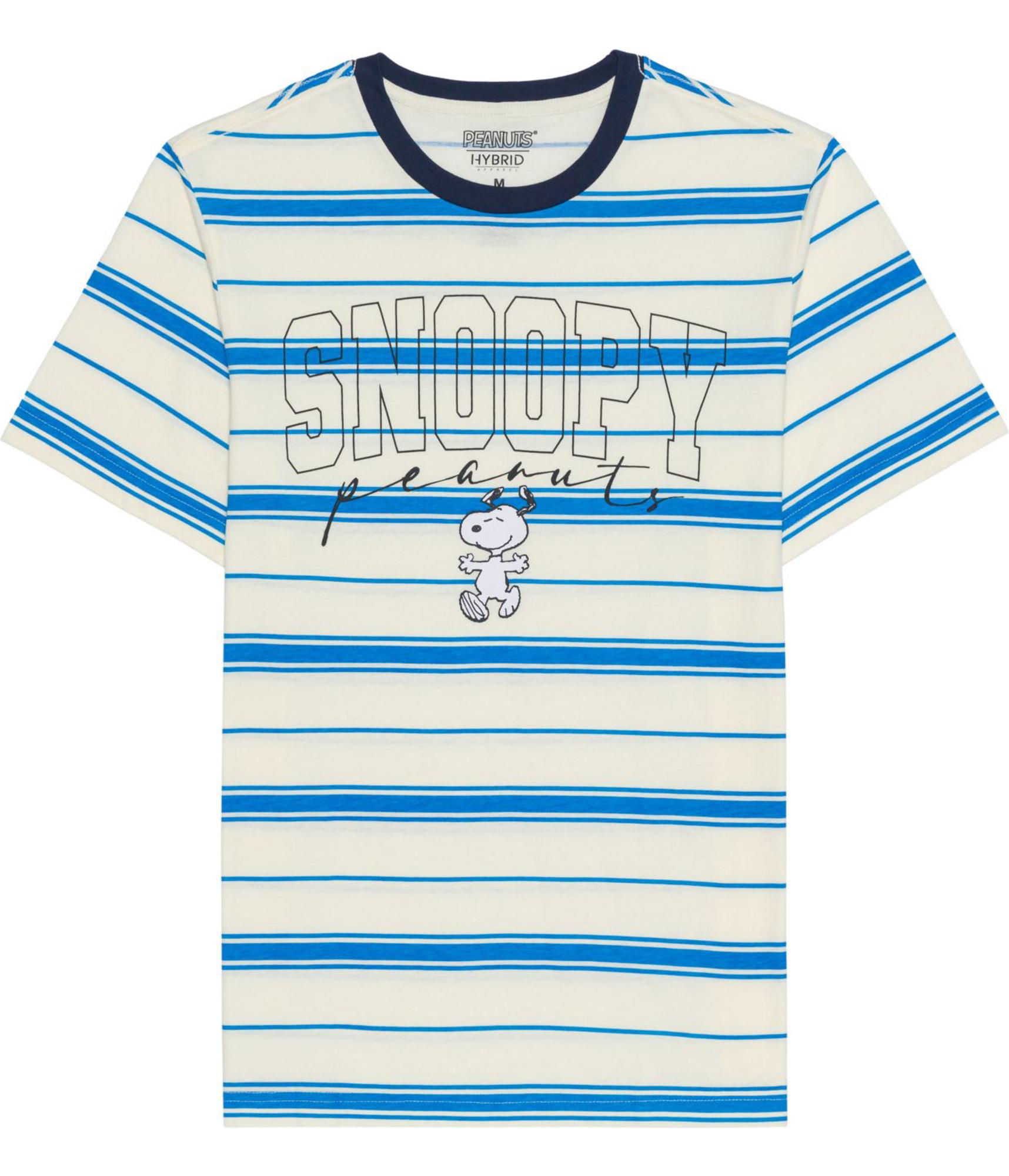 Peanuts Mens Striped Snoopy Embellished T-Shirt, natural, XL