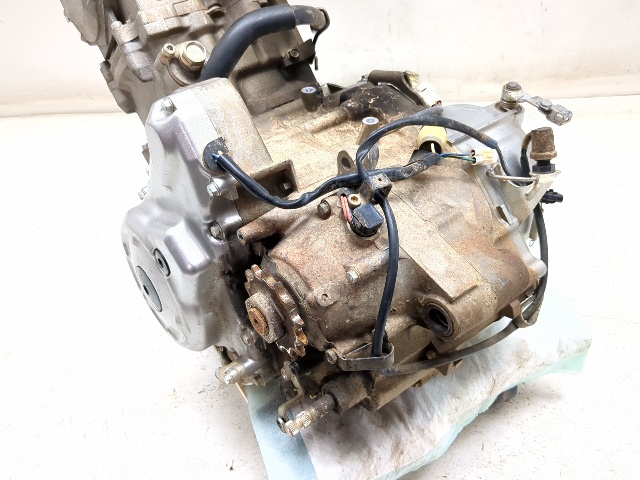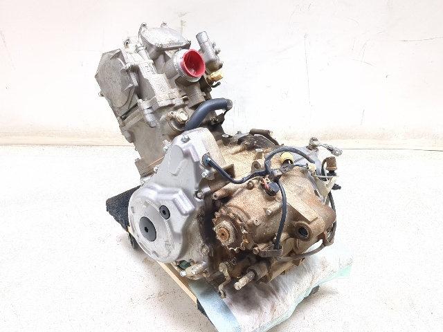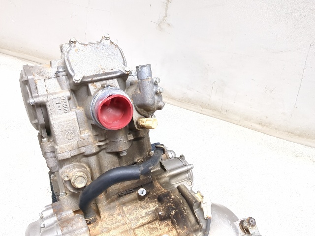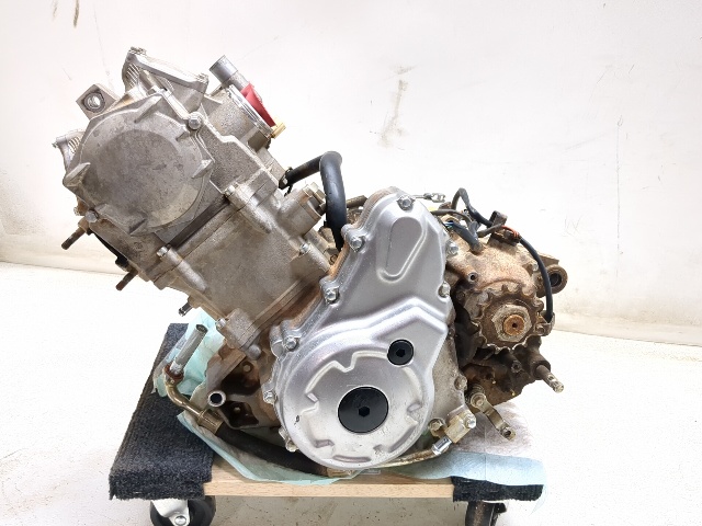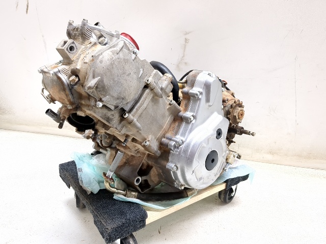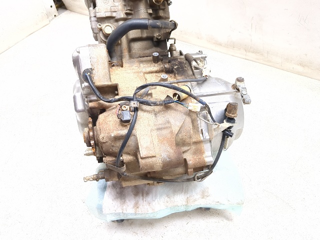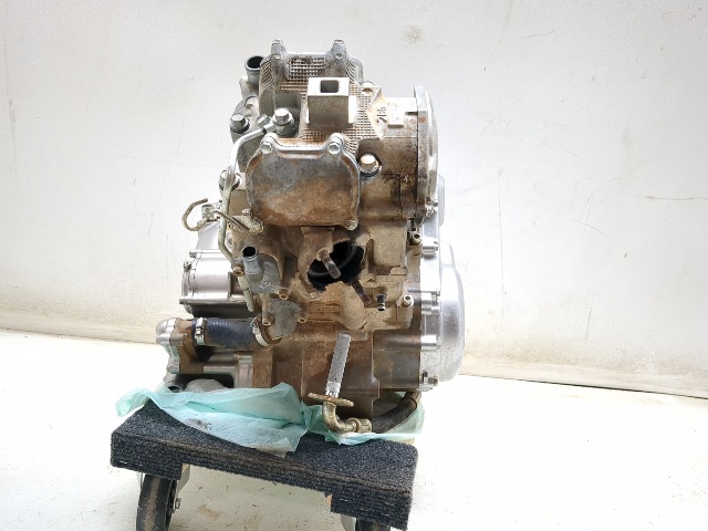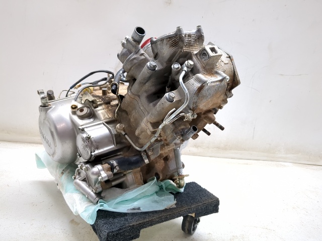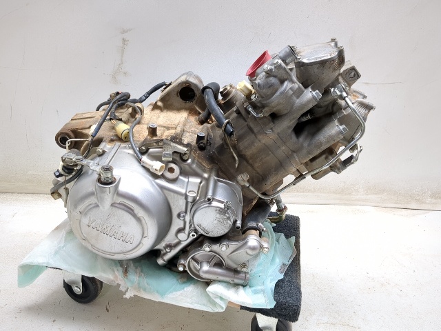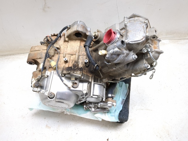 Engine Motor - Complete 686cc liquid-cooled 4-stroke SOHC engine assembly with integrated 5-speed manual transmission and reverse. Fits 2015-2024 Yamaha Raptor 700, 700R, and 700R SE models. Includes starter motor, stator, and water pump as shown. Removed from a low-hour 2019 Raptor 700R. Structurally sound with no cracks or broken mounts. Cylinder casting 2BG00.