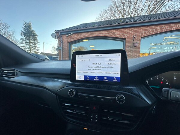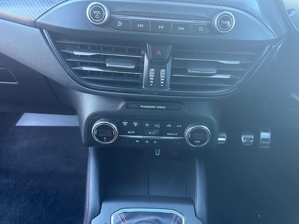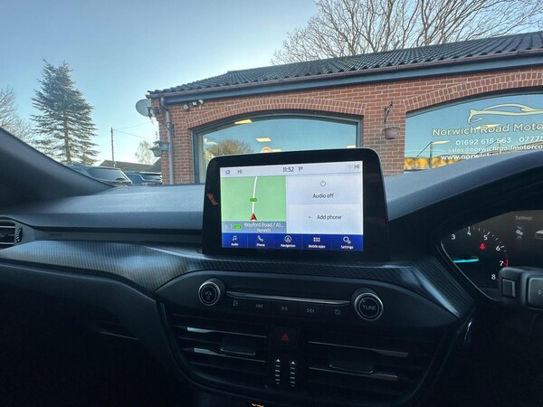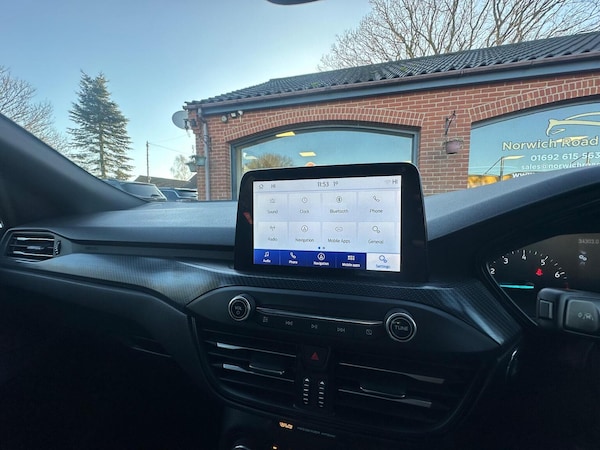 This 2019 Ford Focus ST-Line X boasts exceptionally low mileage for its age, having covered just 34,290 miles. This Euro 6 compliant 1.0 litre petrol model offers a compelling blend of sporty styling and practical features. Inside, you'll find the convenience of front and rear parking sensors, dual zone electronic automatic temperature control for personalised comfort, and automatic headlights. Stay connected and entertained with the Ford SYNC3 DAB Navigation System, complete with Android Auto and Apple CarPlay compatibility, and enjoy the added luxury of heated front seats. The Ford Focus ST-Line X is designed to impress, with its 0-62mph acceleration achieved in a brisk 10.0 seconds, indicating a responsive driving experience compared to many similar vehicles. Its low CO2 emissions also highlight its efficiency. This particular example comes with a 6 month warranty and a 12 month MOT provided on purchase, alongside a partial service history, offering peace of mind for its next owner.