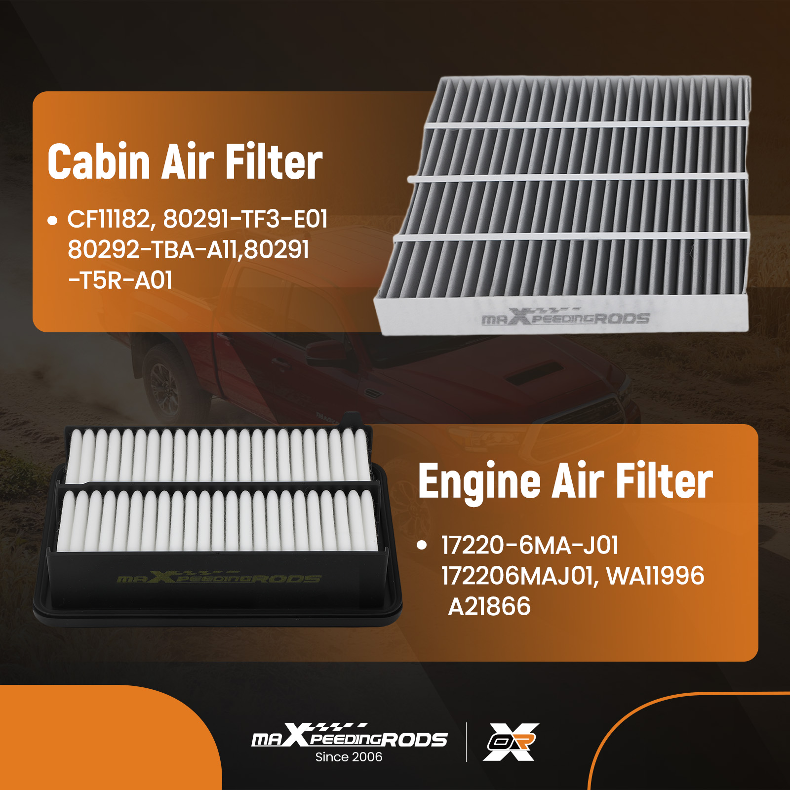 80292-TF0-G01,17220-6MA-J01, 172206MAJ01, WA11996, A21866,80291-TF3-E01,80292-TBA-A11,80291-T5R-A01, CF11182, 24201, CAF1873P, CU21003, C36080