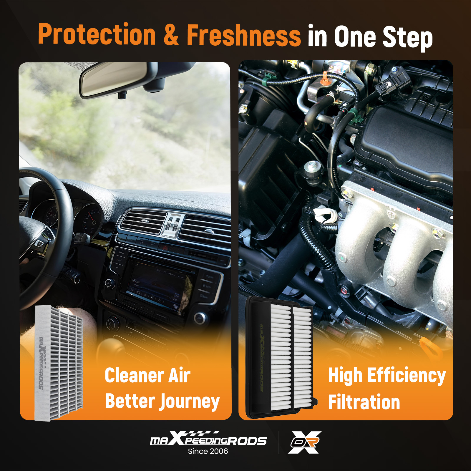 Protection:The cabin air filter effectively absorbs odors, keeping the air inside the vehicle clean. The air filter use high-quality filter materials and filter core structures to ensure that the engine performs at its best.