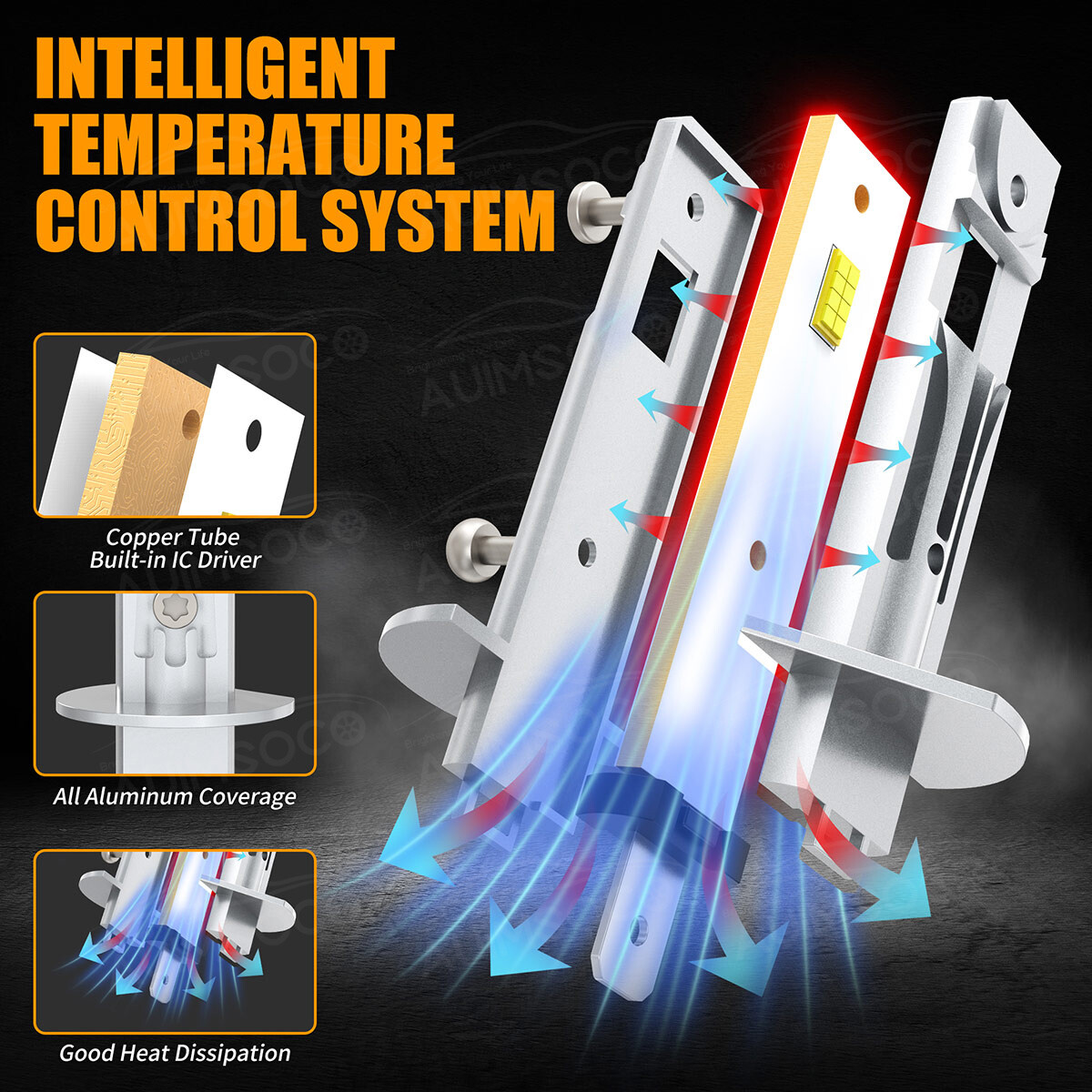 With design of whole aviation aluminum body and temperature control system, AUIMSOCO H1 LED bulbs provide outstanding heat dissipation performance and durability, which ensures a lifespan up to 50,000 hours.