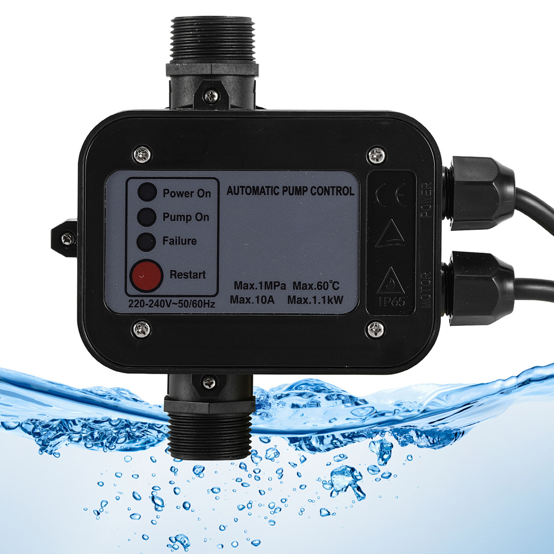 Die Pumpensteuerung überwacht permanent den Leitungsdruck. Wenn der Druck abfällt, schaltet sich das Gerät automatisch ein und stellt den Druck wieder her. Wenn der Leitungsdruck wieder erreicht ist, schaltet sich die Pumpensteuerung automatisch ab. Schützen Sie Ihre Wasserpumpe effektiv und verlängern Sie ihre Lebensdauer. Sie eignet sich sehr gut für gängige Pumpen-, Schlauch- oder Rohrverbindungen.