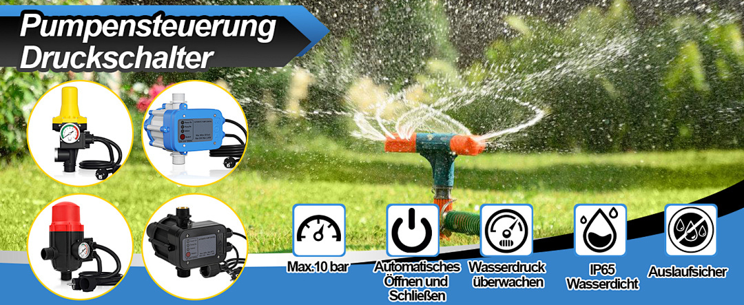 Ob für die Wasserversorgung im Haushalt, die Gartenbewässerung, das Pumpen von Schwimmbädern oder für Reinigungsarbeiten - die Pumpensteuerung bietet eine hervorragende Steuerungsleistung, automatische Steuerung und zuverlässigen Trockenlaufschutz und eignet sich für Tiefbrunnenpumpen, Gärten und Wasserpumpen ohne Netzstecker.