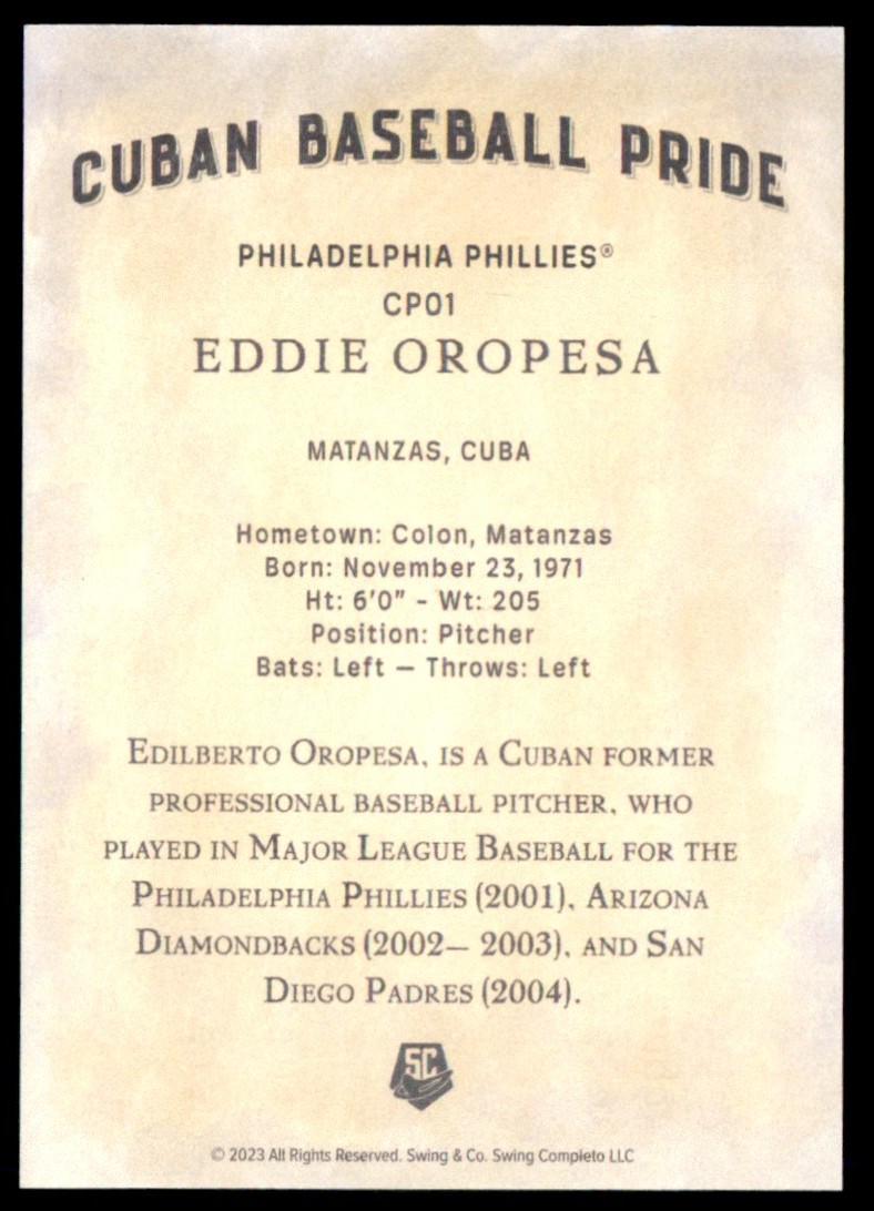 | 2023 Swing Completo Cuban Baseball Pride Eddi Oropesa Philadelphia Phillies |